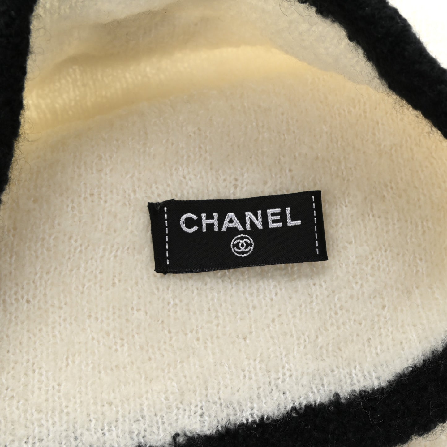 Chanel/ Accessories/ Hats /Chanel Cashmere Silk CC Beanie Hat White Black