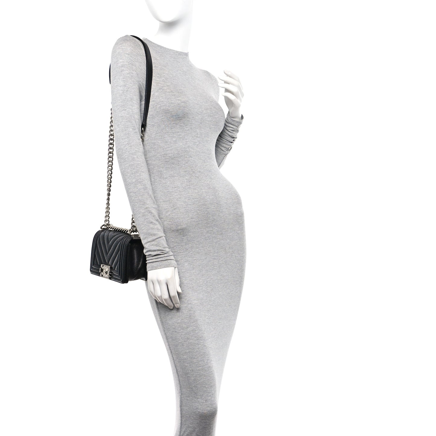 Chanel/ Bags/ Shoulder Bags /Chanel Caviar Chevron Quilted Small Boy Flap Black