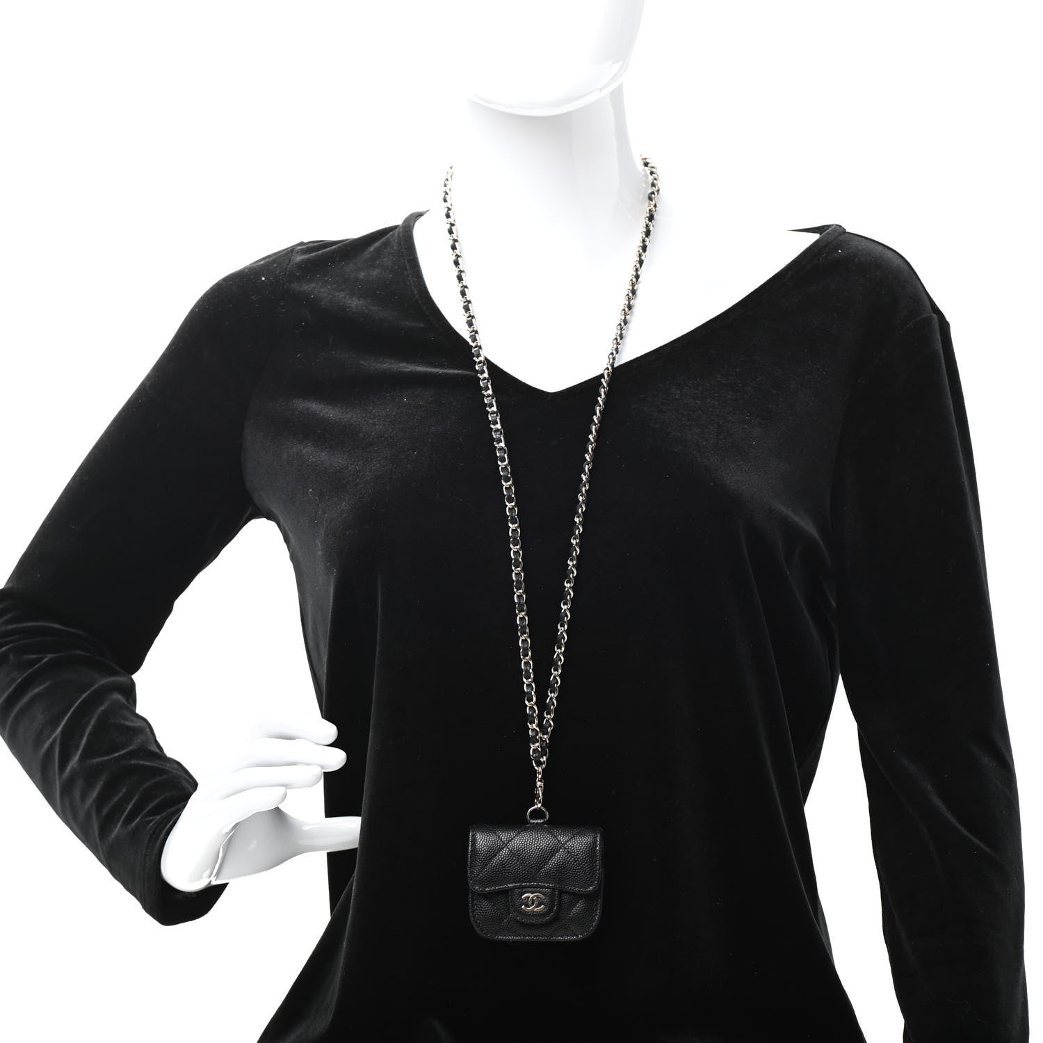 This is an authentic CHANEL Caviar Quilted Airpods Pro Case in Black. This chic air pod case is crafted of luxurious diamond quilted caviar leather in black. The case features a gold chain shoulder strap and a CC logo.Follow this item for alerts. Chanel is a registered trademark of Chanel. FASHIONPHILE is not affiliated with Chanel.