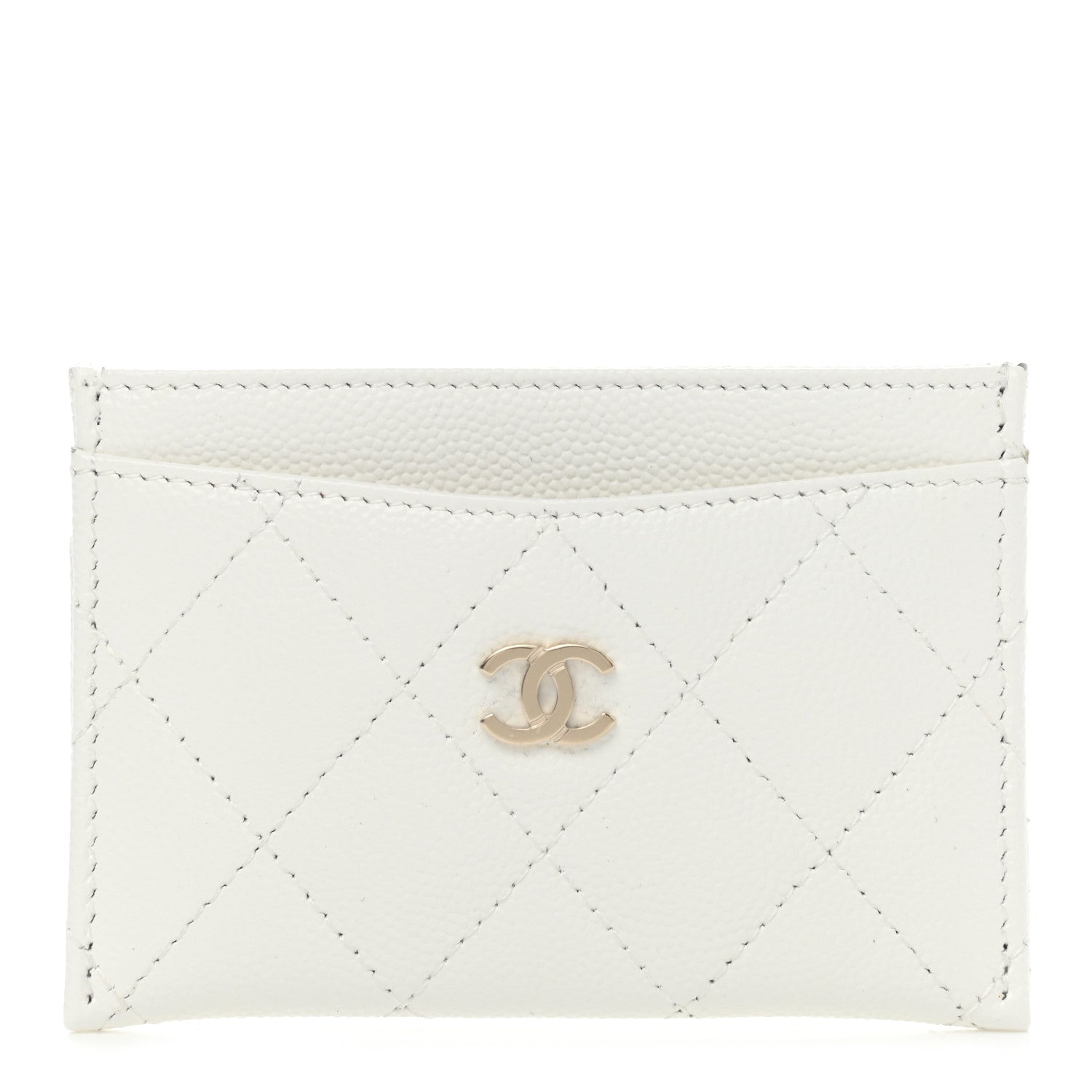 This is an authentic CHANEL Caviar Quilted Card Holder in White. This simple and very chic card holder is crafted of luxurious white caviar leather. It features a polished light gold Chanel CC logo and opens to a white fabric interior.Follow this item for alerts. Chanel is a registered trademark of Chanel. FASHIONPHILE is not affiliated with Chanel.