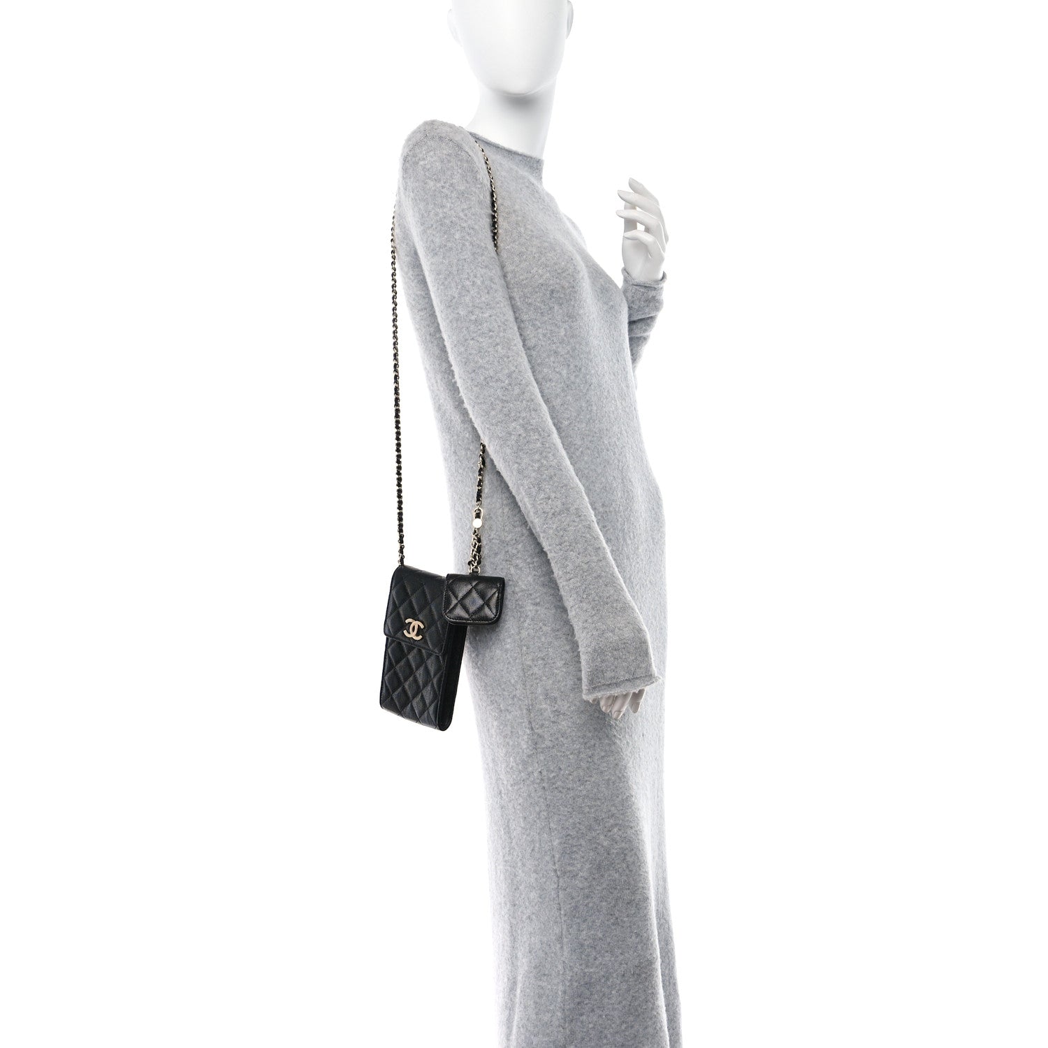 Chanel/ Accessories/ Crossbody /Chanel Caviar Quilted CC Airpods Pro and Phone Case With Chain Black