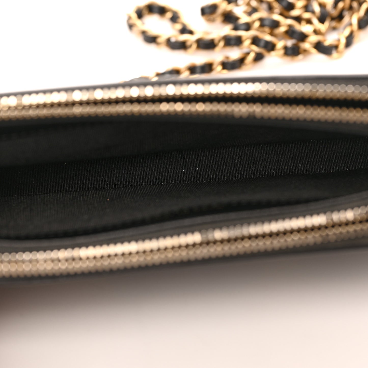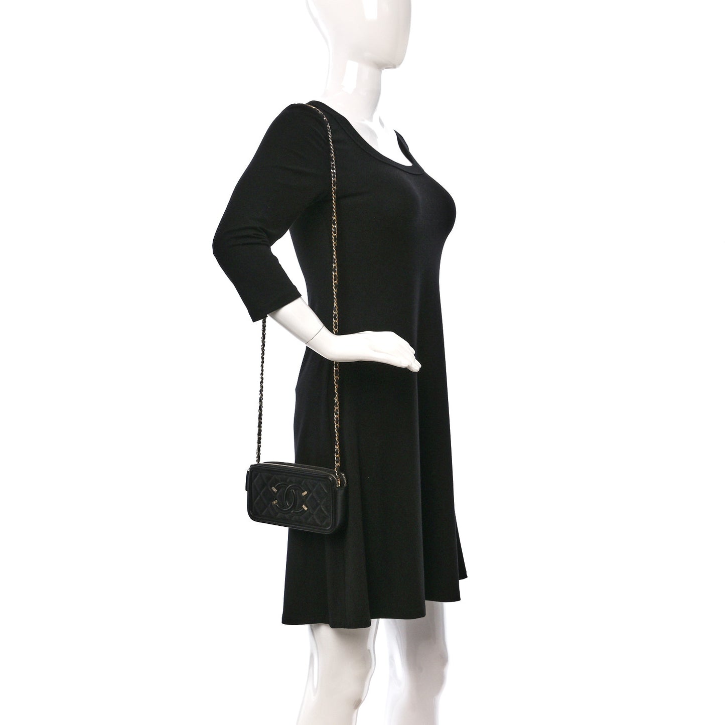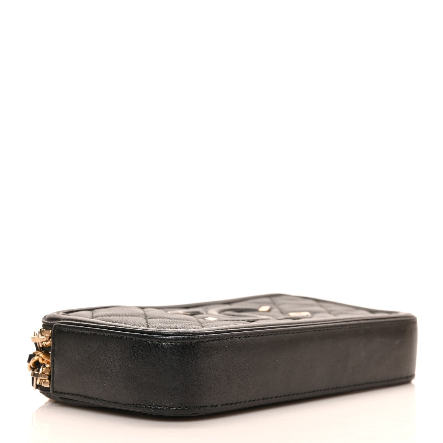 Caviar Quilted CC Filigree Clutch With Chain Black