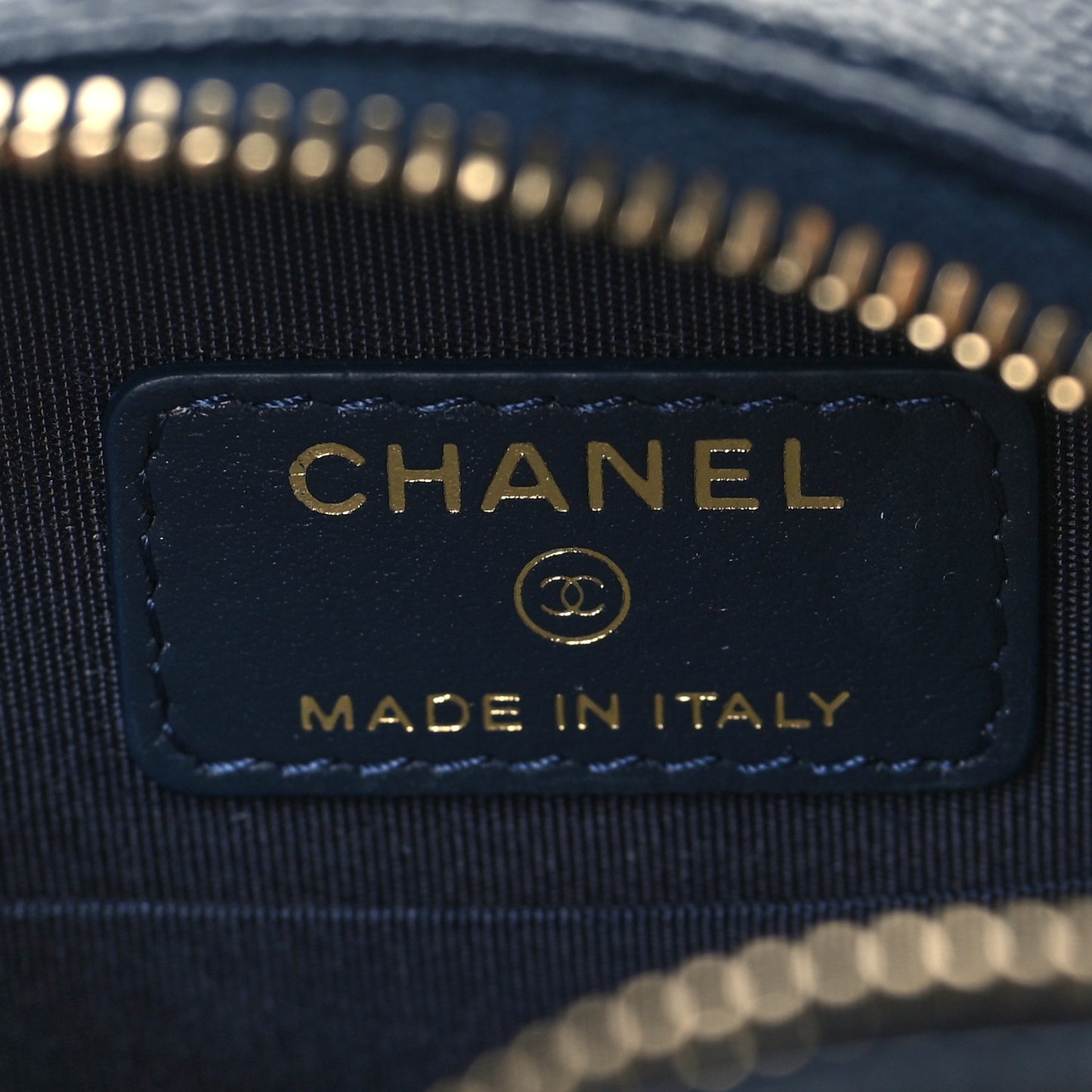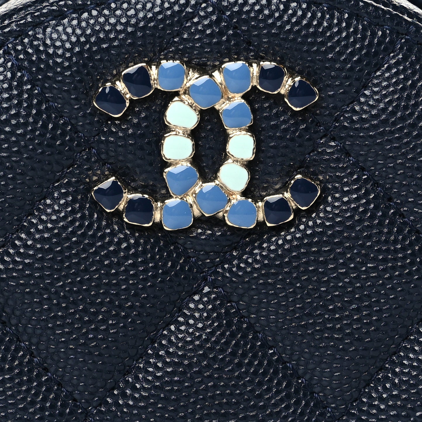 Caviar Quilted Gripoix CC Round Clutch With Chain Navy