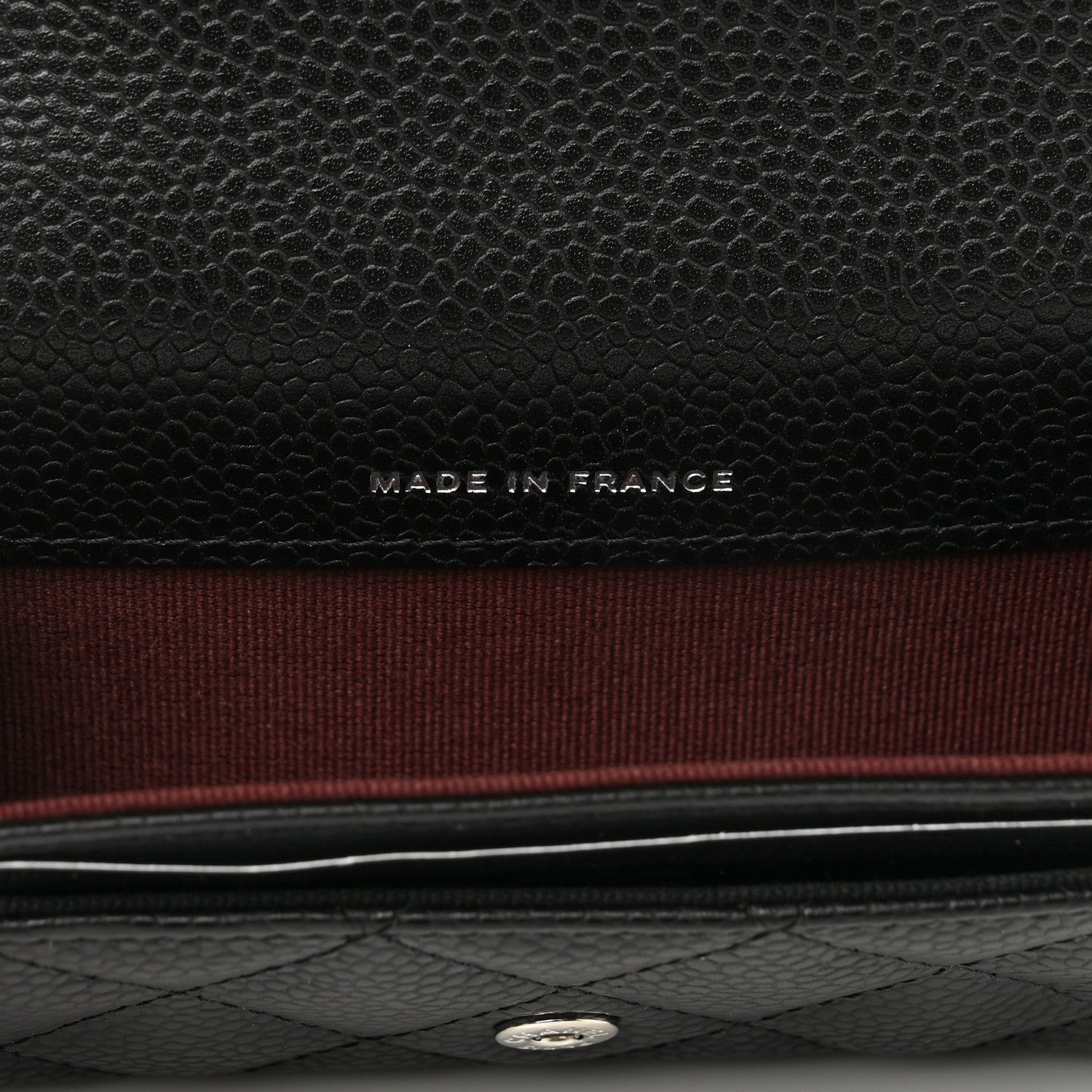 This is an authentic CHANEL Caviar Quilted Flap Card Holder Wallet in Black. This cardholder is crafted of caviar leather in black. The cardholder features a polished silver Chanel CC logo and on the front and opens to a burgundy fabric interior.Follow this item for alerts. Chanel is a registered trademark of Chanel. FASHIONPHILE is not affiliated with Chanel.