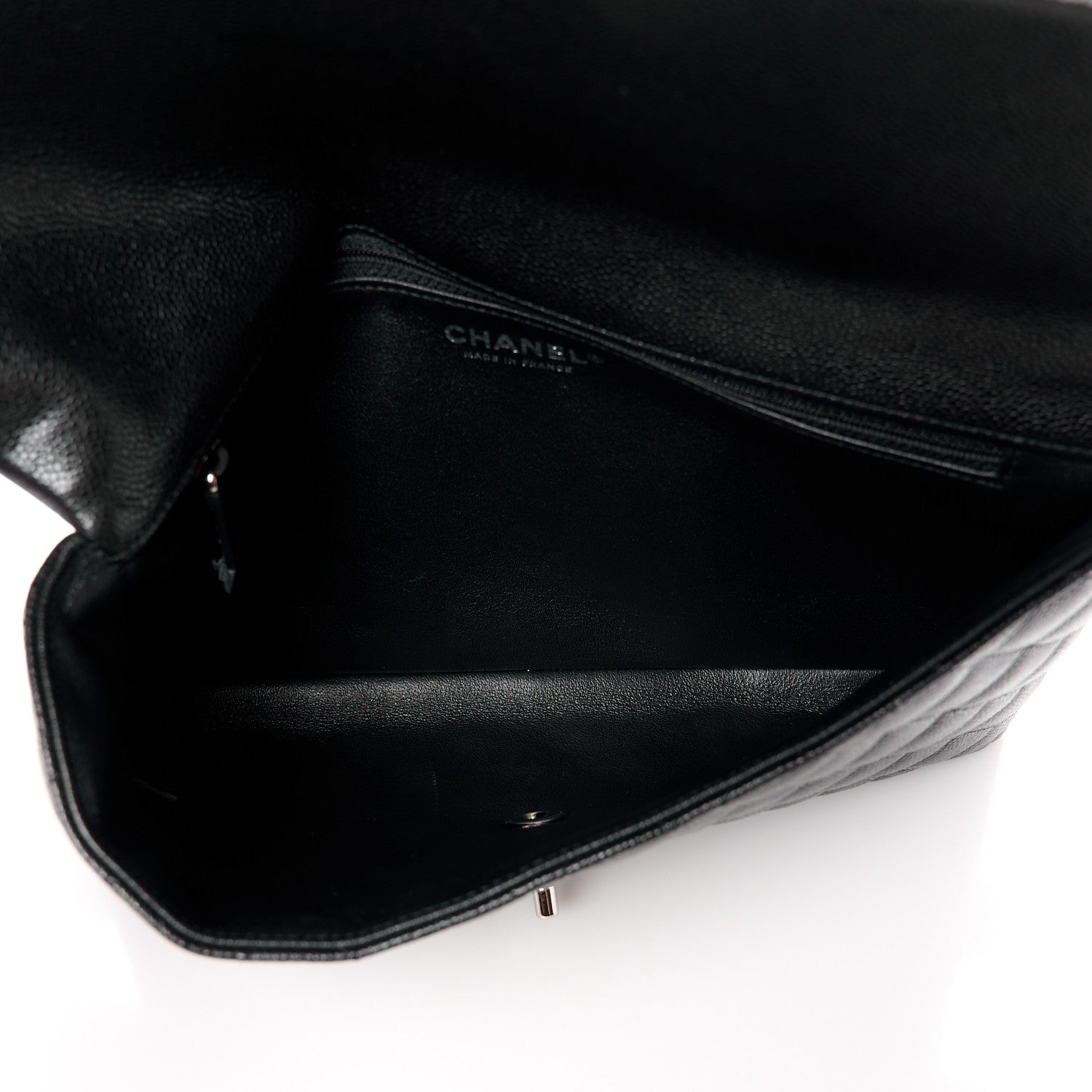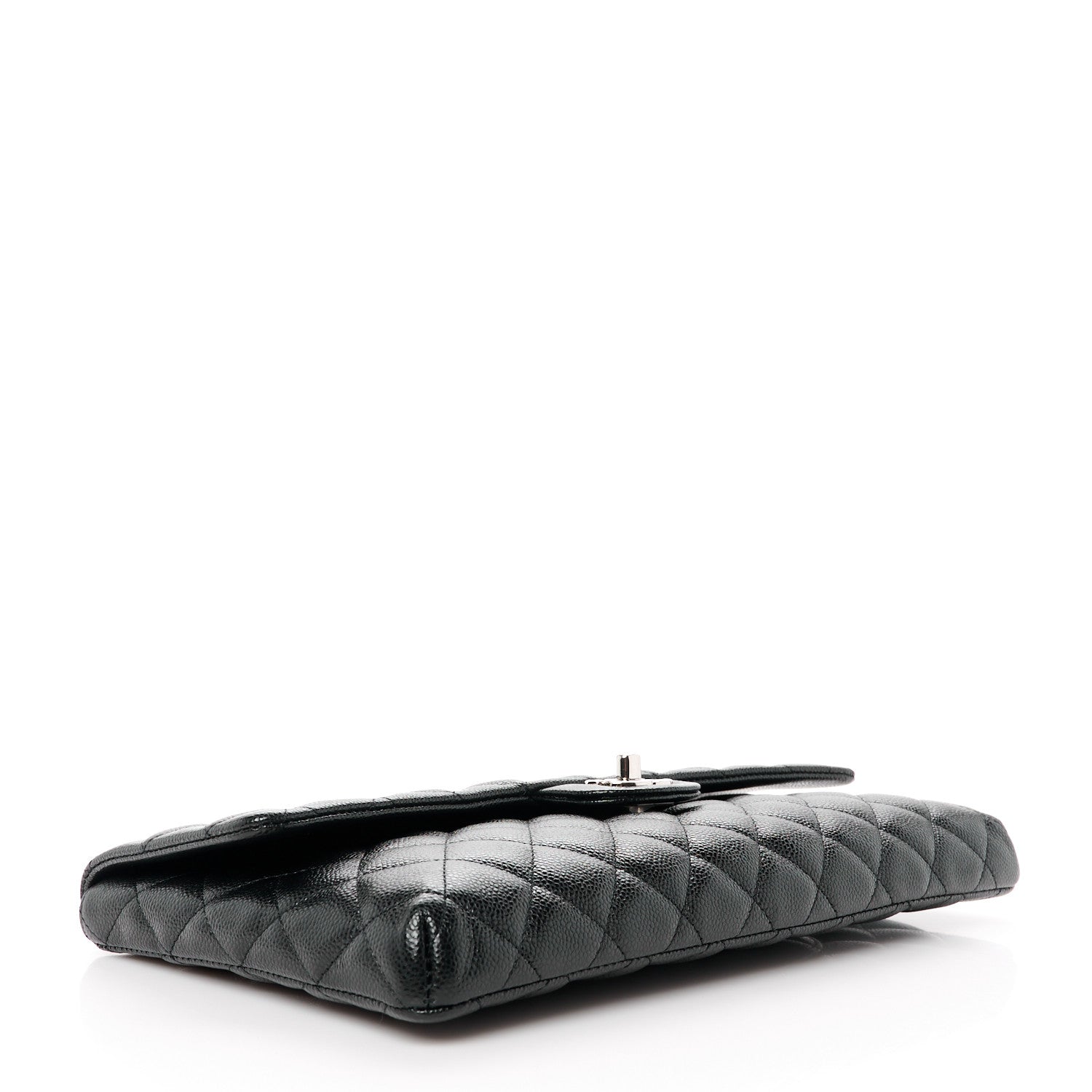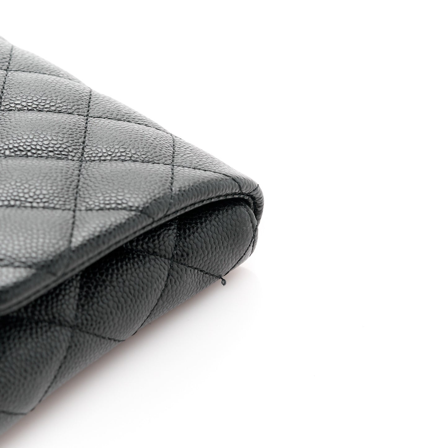 This is an authentic CHANEL Caviar Quilted Flap Clutch in Black. This quilted black caviar leather clutch features a rear patch pocket and a silver CC turn lock on the front. This opens the crossover flap to a smooth black leather interior with a zippered pocket.Follow this item for alerts. Chanel is a registered trademark of Chanel. FASHIONPHILE is not affiliated with Chanel.