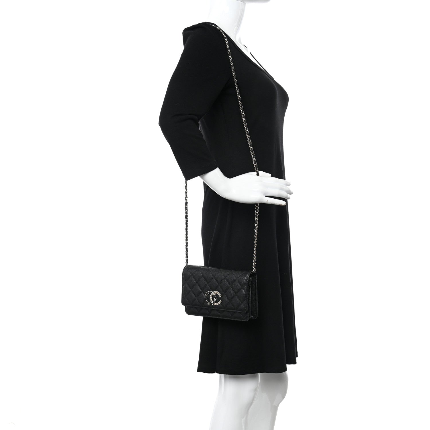 Caviar Quilted French New Wave Chain CC Wallet On Chain WOC Black