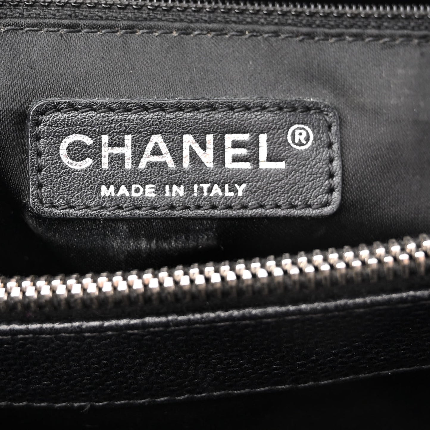 This is an authentic CHANEL Caviar Quilted Grand Shopping Tote GST in Black. This stylish tote is crafted of diamond quilted caviar leather in black. The bag features leather threaded silver chain-link shoulder straps with leather shoulder pads, a prominent quilted Chanel CC logo on the front, and a rear patch pocket. The top is open to a partitioned black satin interior with a central zipped compartment, zipper, and patch pockets.Follow this item for alerts. Chanel is a registered trademark of Chanel. FASHIONPHILE is not affiliated with Chanel.