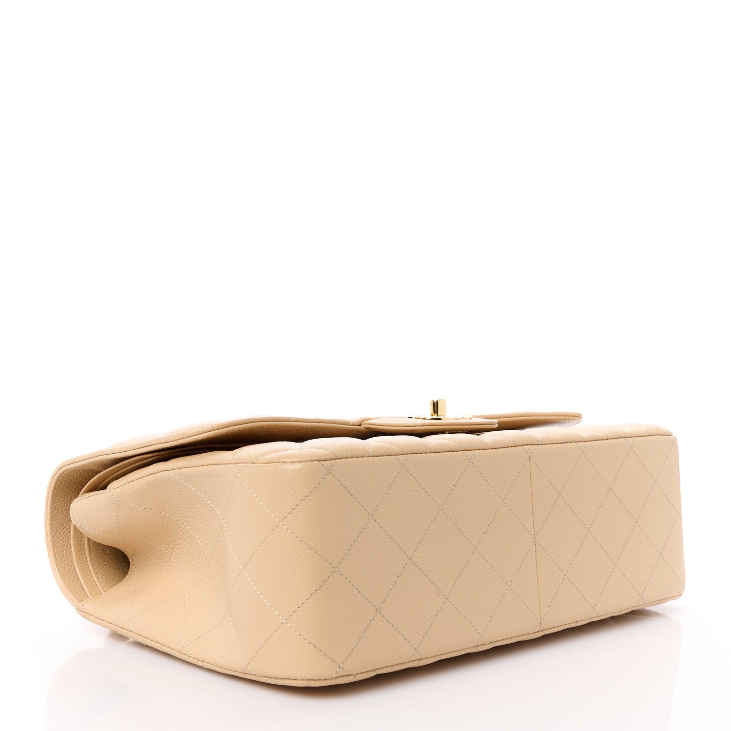 Caviar Quilted Jumbo Double Flap Beige