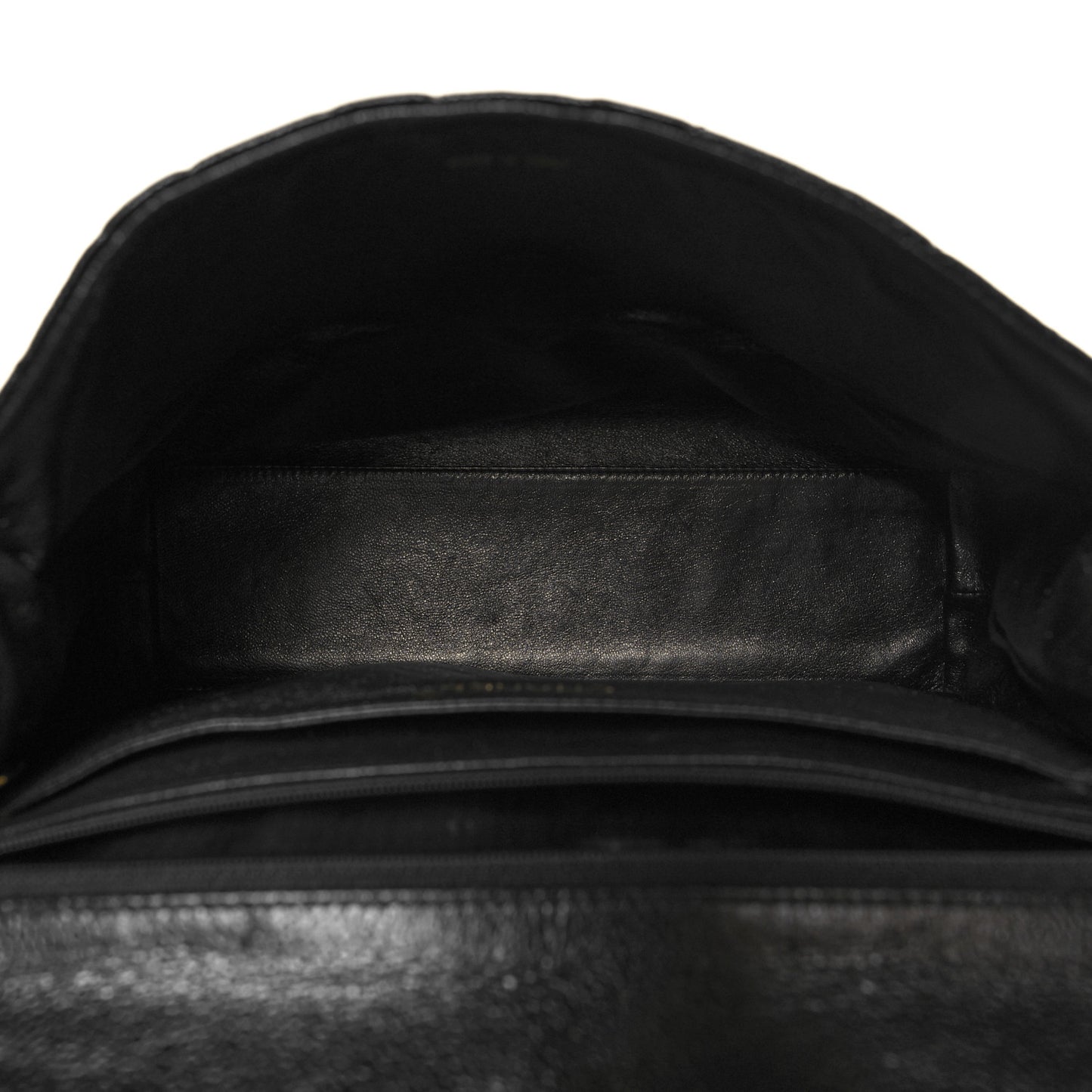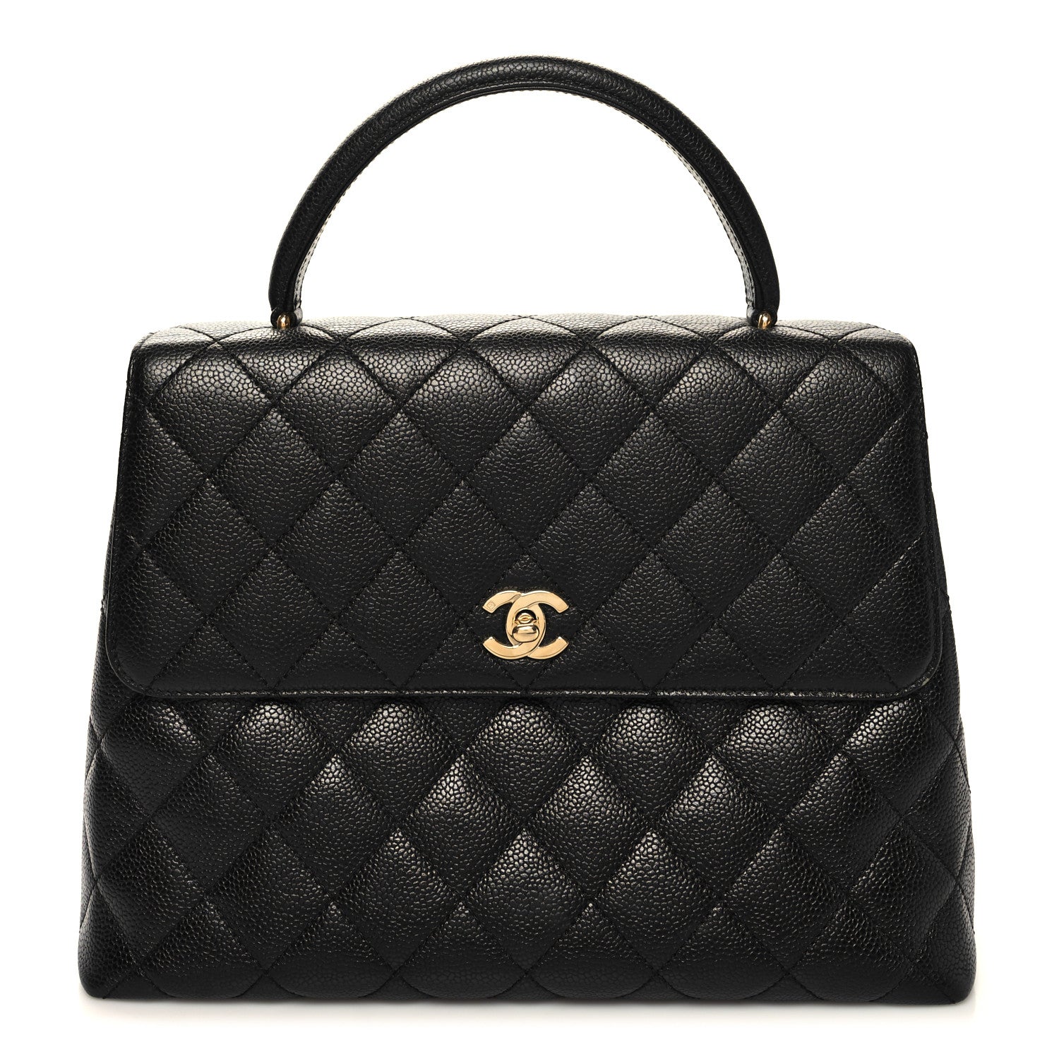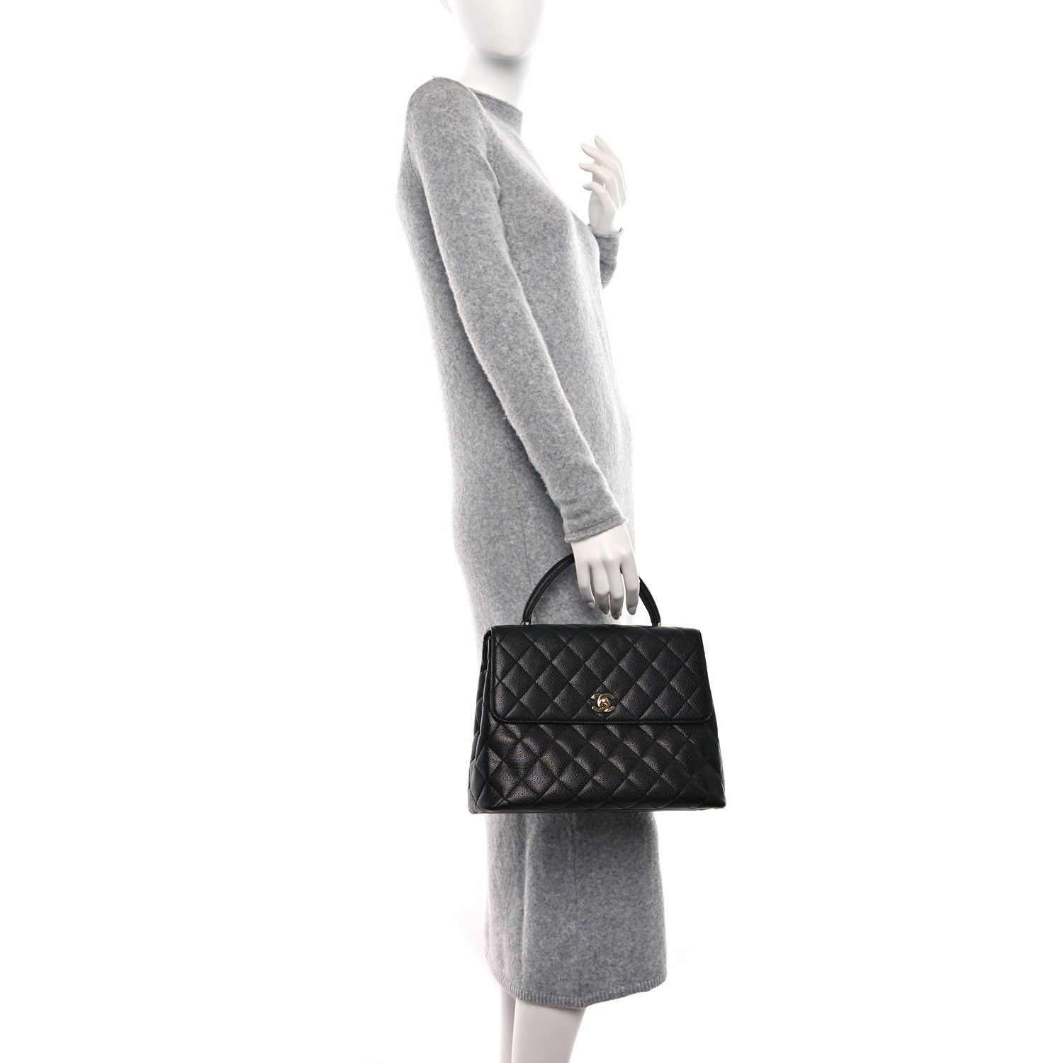 This is an authentic CHANEL Caviar Quilted Jumbo Kelly Flap in Black. This classic top handle bag is crafted of diamond-quilted caviar leather in black. The bag features a looping top handle, a rear patch pocket, and brass hardware as well as a matching Chanel CC turn-lock on the front facing flap. This opens to a black leather interior with zipper and patch pockets.Follow this item for alerts. Chanel is a registered trademark of Chanel. FASHIONPHILE is not affiliated with Chanel.