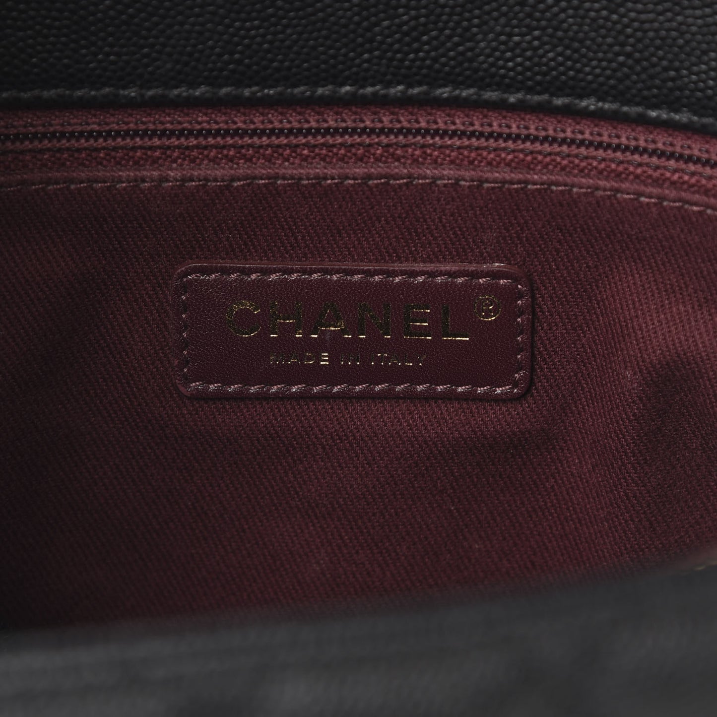 This is an authentic CHANEL Caviar Quilted Large Coco Handle Flap in Black. This sleek, classic tote is crafted of diamond quilted caviar leather in black. The shoulder bag features a black leather top handle, a rear patch pocket, a leather threaded gold chain link shoulder strap with a shoulder pad, and a gold CC turn lock closure. This opens the half flap to a partitioned burgundy fabric interior with zipper and patch pockets as well as a central zipper compartment.Follow this item for alerts. Chanel is a registered trademark of Chanel. FASHIONPHILE is not affiliated with Chanel.
