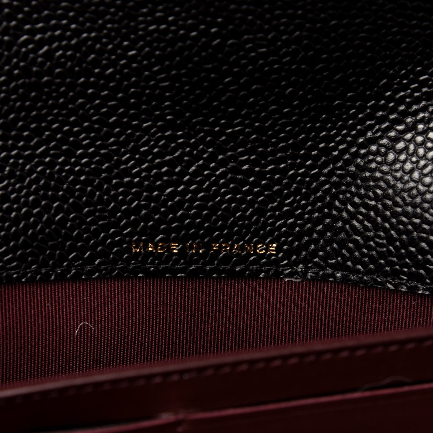 This is an authentic CHANEL Caviar Quilted Large Gusset Flap Wallet in Black. This is a chic clutch wallet is crafted of diamond quilted luxurious caviar leather in black. The wallet features a front flap with a small polished gold Chanel CC logo. This opens with a snap to a burgundy leather and fabric interior with a card slot panel, patch pockets, and a coin compartment.Follow this item for alerts. Chanel is a registered trademark of Chanel. FASHIONPHILE is not affiliated with Chanel.