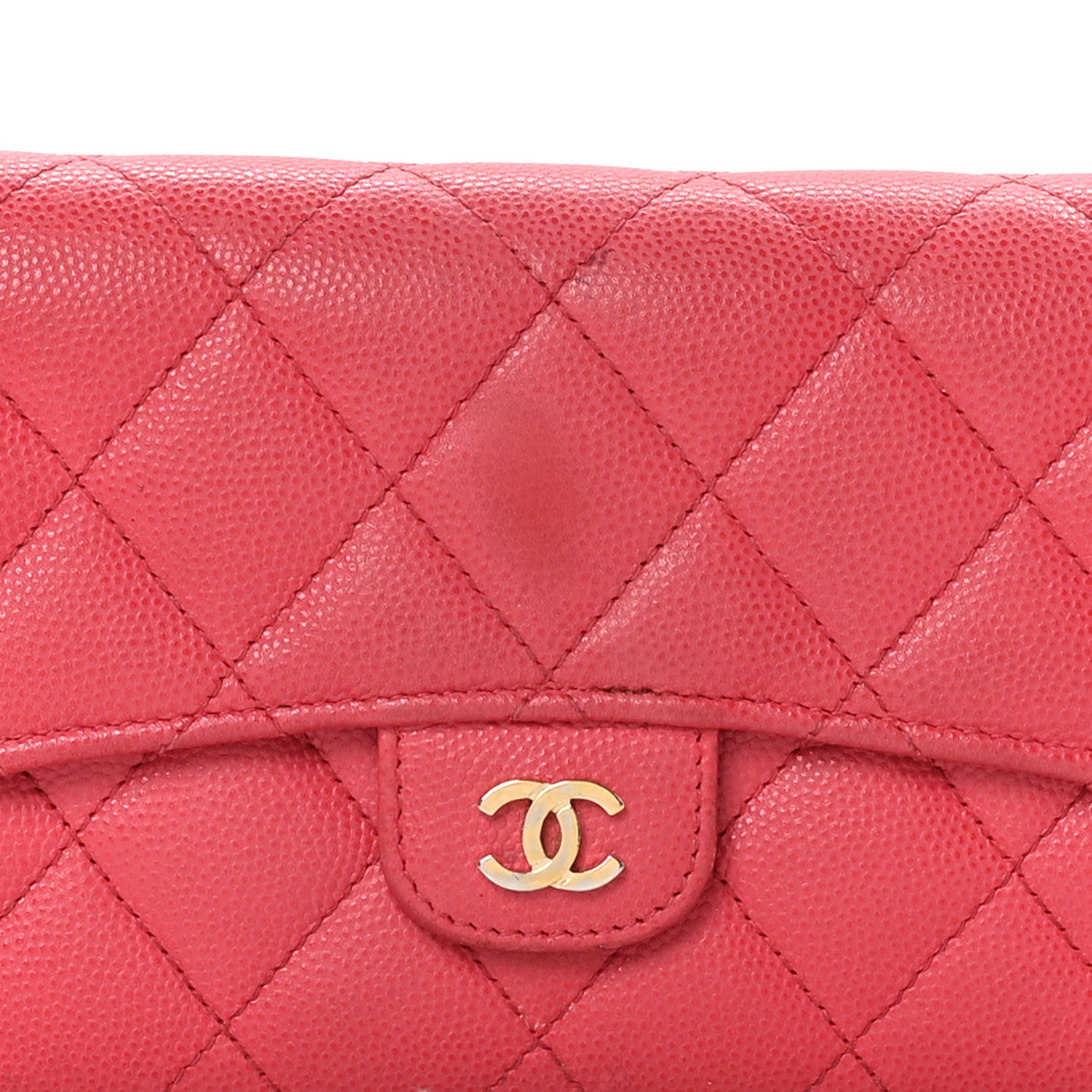 This is an authentic CHANEL Caviar Quilted Large Gusset Flap Wallet in Pink. This is a chic wallet is crafted of diamond quilted caviar leather in bright pink. It features a polished gold CC and the front flap opens to a matching interior with a card slot panel, patch pockets and a zipper compartment.Follow this item for alerts. Chanel is a registered trademark of Chanel. FASHIONPHILE is not affiliated with Chanel.
