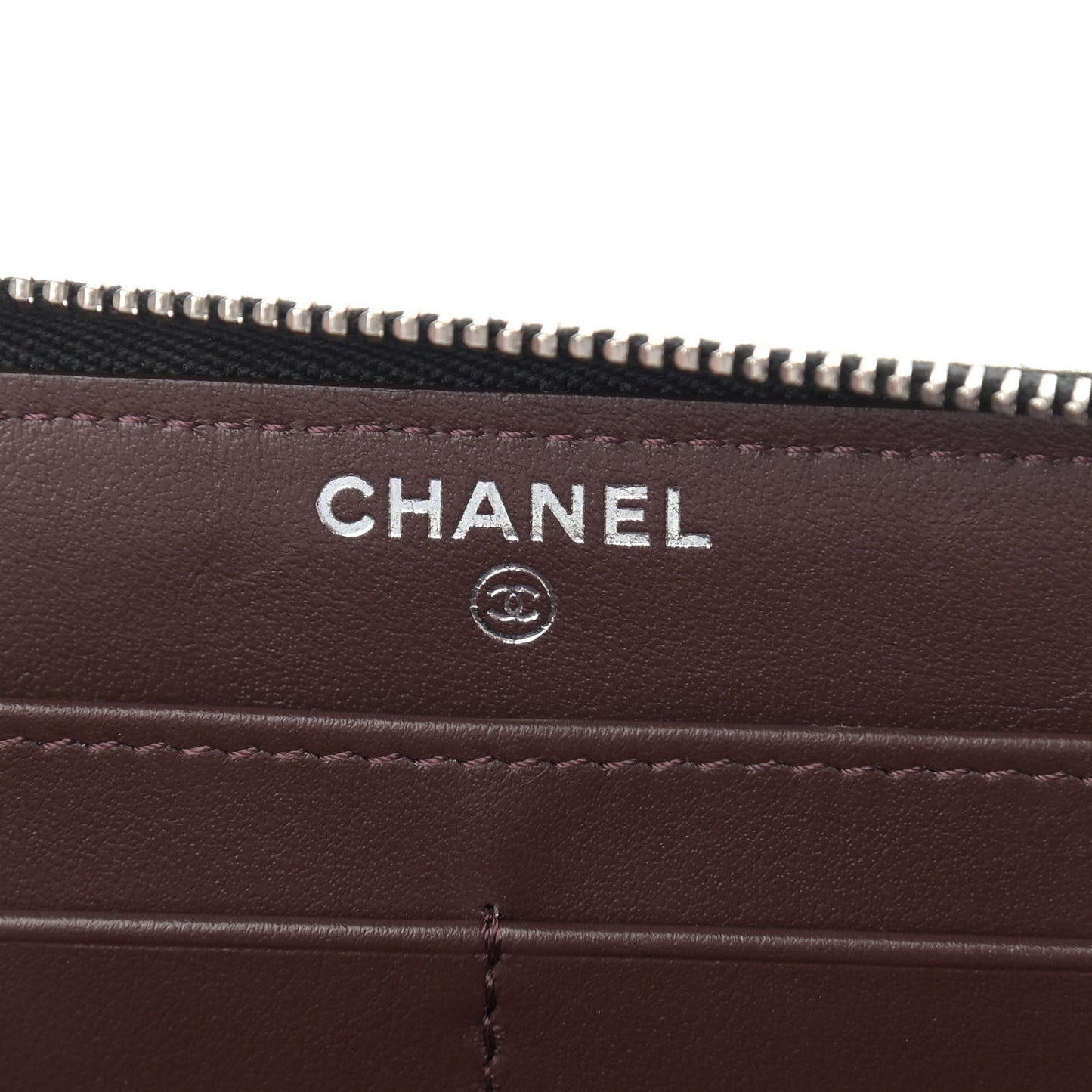 This is an authentic CHANEL Caviar Quilted Large Gusset Zip Around Wallet in Black. This chic wallet is crafted of quilted caviar leather in black with a small silver Chanel CC logo. The zipper opens to a partitioned burgundy leather interior with two panels for card slots and a central zipper compartment.Follow this item for alerts. Chanel is a registered trademark of Chanel. FASHIONPHILE is not affiliated with Chanel.