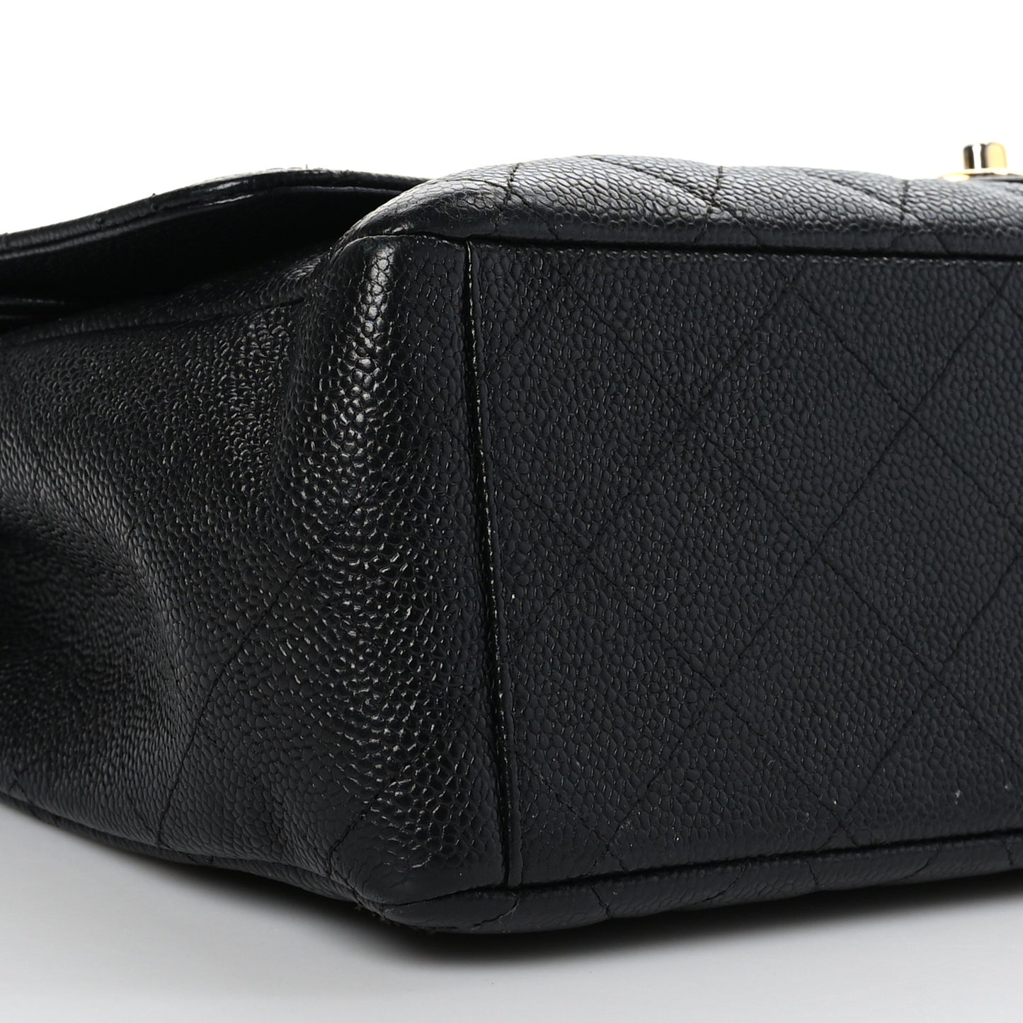 This is an authentic CHANEL Caviar Quilted Maxi Double Flap in Black. This stylish shoulder bag is crafted of luxurious caviar textured leather in black. It features leather threaded polished gold chain-link shoulder straps, a rear patch pocket, and a front flap with a gold CC turn lock. The flap opens to an inner flap and a burgundy leather interior with patch pockets.Follow this item for alerts. Chanel is a registered trademark of Chanel. FASHIONPHILE is not affiliated with Chanel.