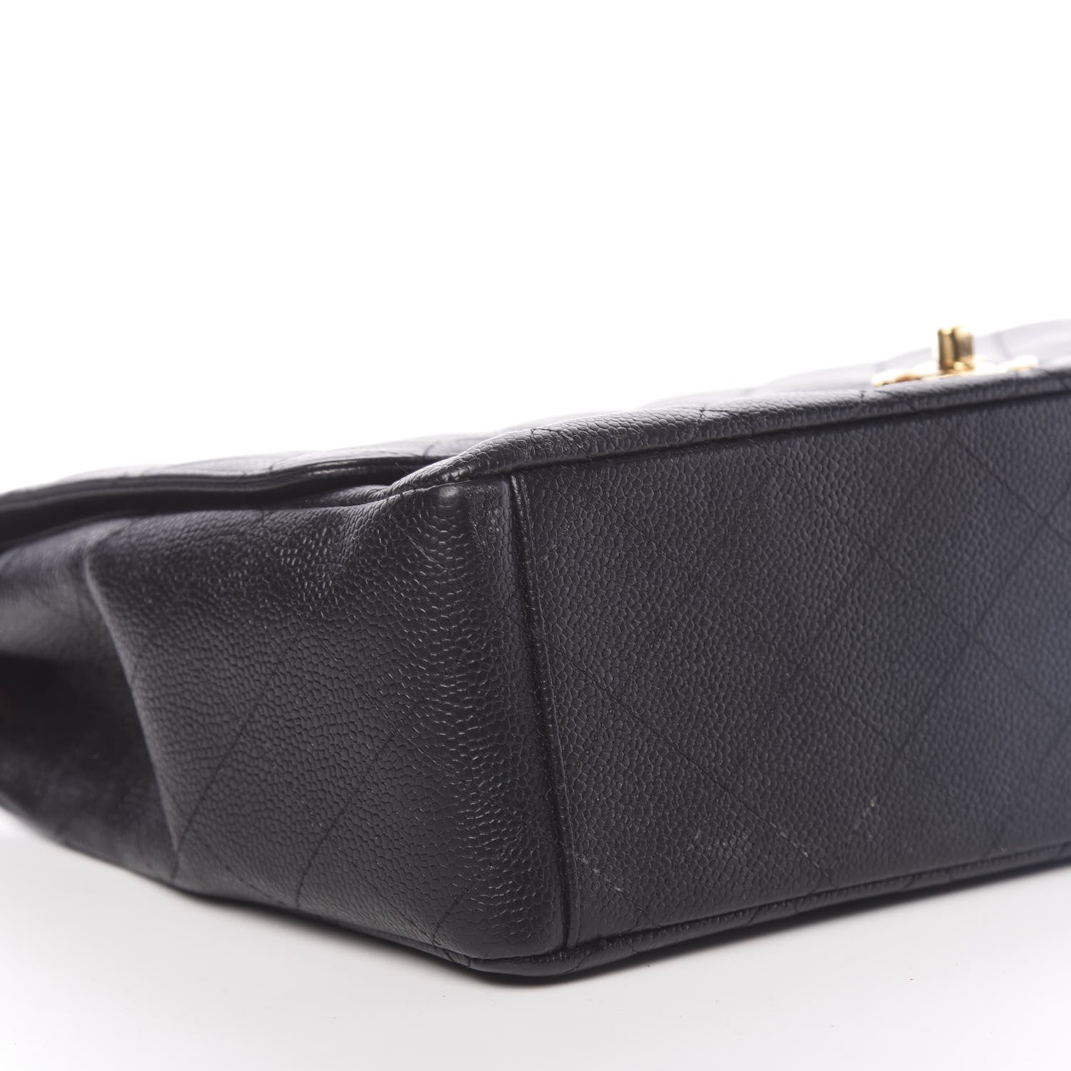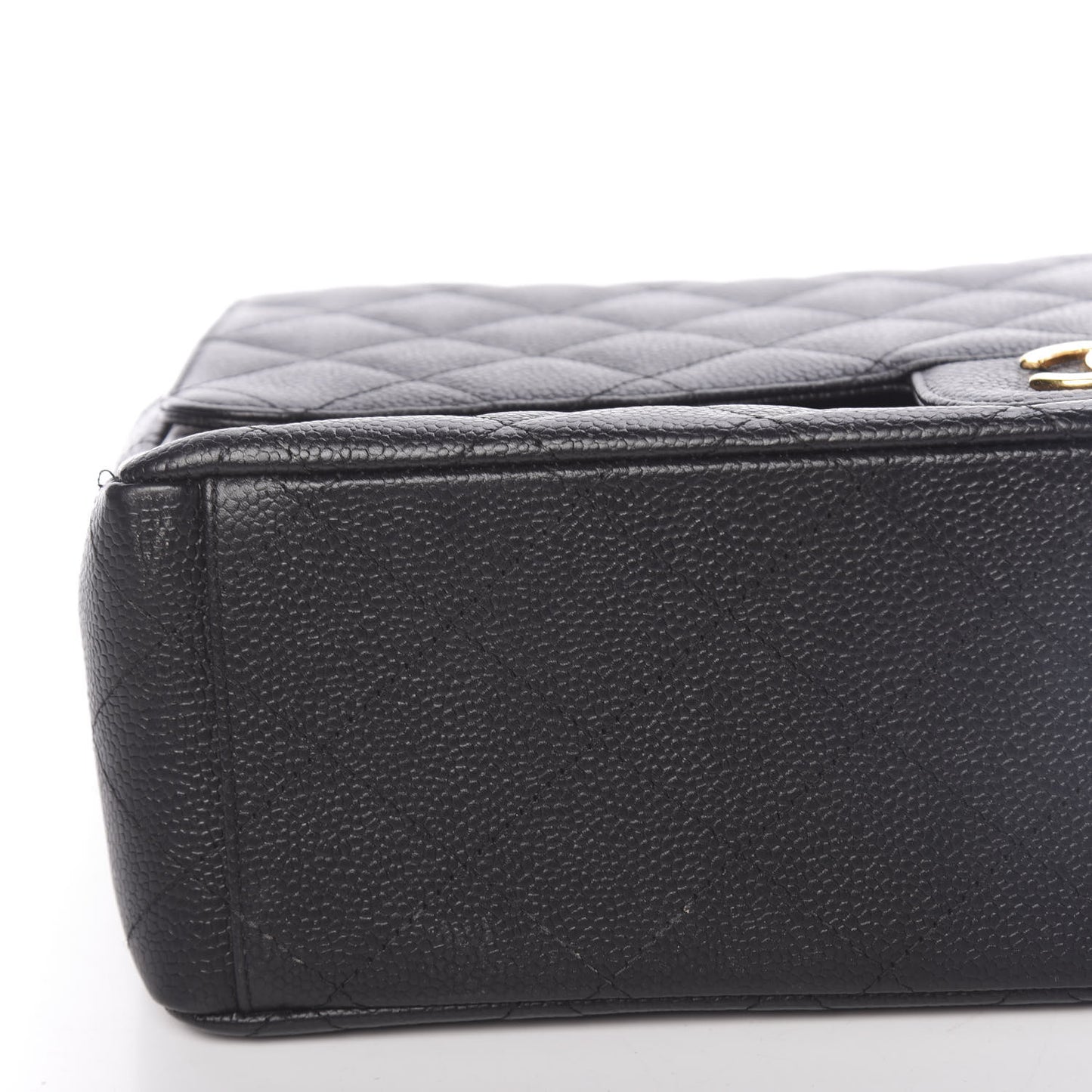 This is an authentic CHANEL Caviar Quilted Maxi Double Flap in Black. This stylish shoulder bag is crafted of luxurious caviar textured leather in black. The shoulder bag features a leather threaded polished gold chain link shoulder straps, a rear patch pocket, and a front flap with a gold CC turn lock. The flap opens to a second flap and a burgundy leather interior with patch pockets. This is an ideal classic shoulder bag perfect for day or evening, from Chanel!Follow this item for alerts. Chanel is a registered trademark of Chanel. FASHIONPHILE is not affiliated with Chanel.