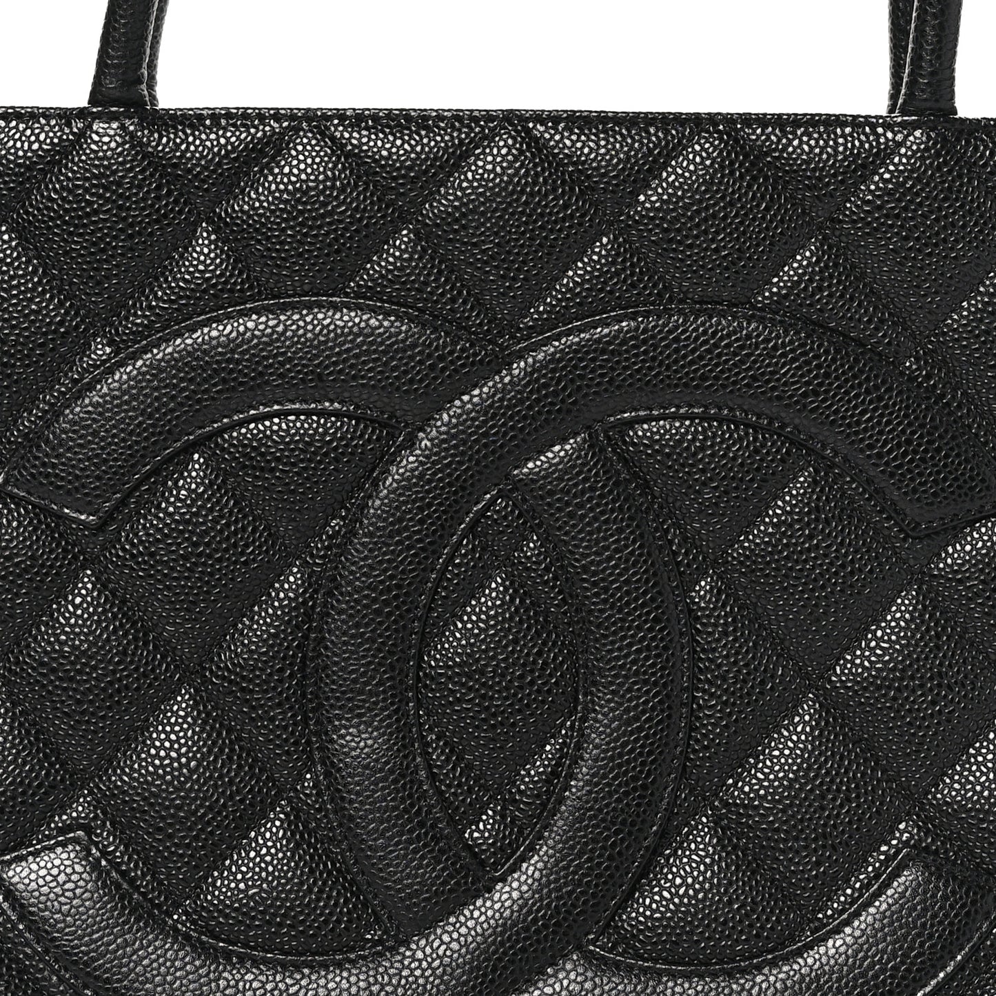 This is an authentic CHANEL Caviar Quilted Medallion Tote in Black. This stylish tote is beautifully crafted of diamond-quilted caviar leather in black with a prominent Chanel CC logo patch on the front. The bag features a rear patch pocket and rolled leather top handles. The brushed silver medallion zipper pull opens the bag to a smooth black leather interior with zipper and patch pockets.Follow this item for alerts. Chanel is a registered trademark of Chanel. FASHIONPHILE is not affiliated with Chanel.