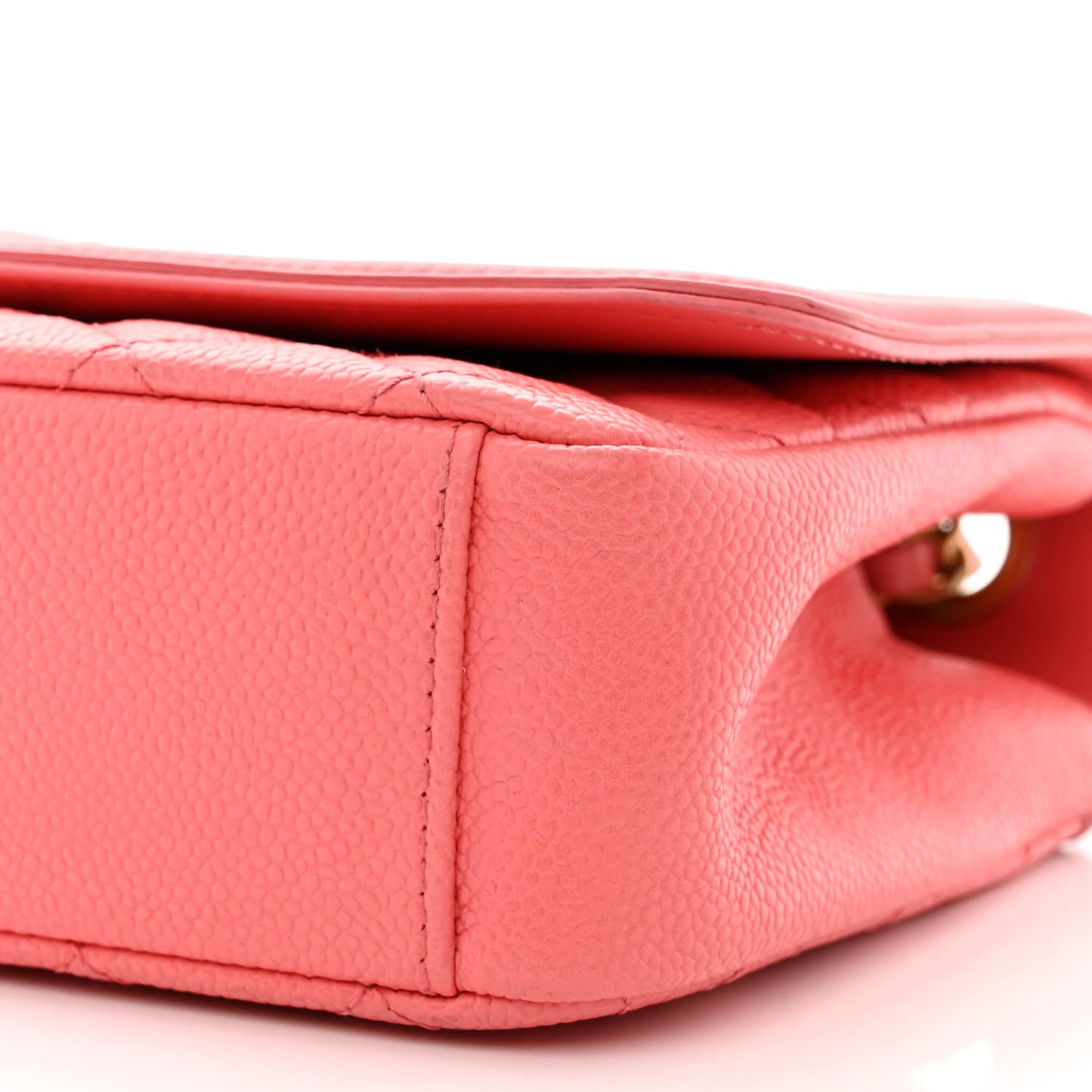 This is an authentic CHANEL Caviar Quilted Medium CC Filigree Flap in Pink. This stylish shoulder bag is crafted of luxurious caviar leather in coral pink with smooth leather trim. The bag features a matte gold chain link leather threaded shoulder strap and gold tips on the Chanel CC logo patch on the front flap. This opens with a magnetic snap to a matching leather interior with a zipper and patch pockets.Follow this item for alerts. Chanel is a registered trademark of Chanel. FASHIONPHILE is not affiliated with Chanel.