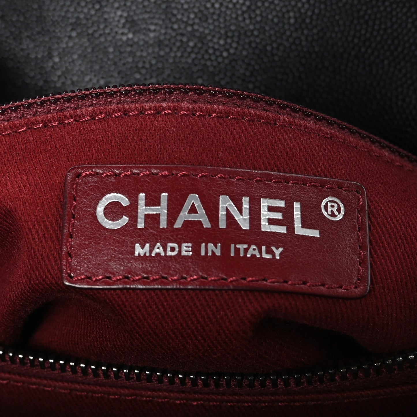 This is an authentic CHANEL Caviar Quilted Medium Coco Handle Flap in Black. This sleek, classic tote is crafted of diamond-quilted caviar leather in black. The shoulder bag features a black leather top handle, a rear patch pocket, a leather threaded ruthenium chain-link shoulder strap with a leather shoulder pad, and a ruthenium CC turn-lock closure. This opens the half flap to a partitioned burgundy fabric interior with zipper and patch pockets.Follow this item for alerts. Chanel is a registered trademark of Chanel. FASHIONPHILE is not affiliated with Chanel.