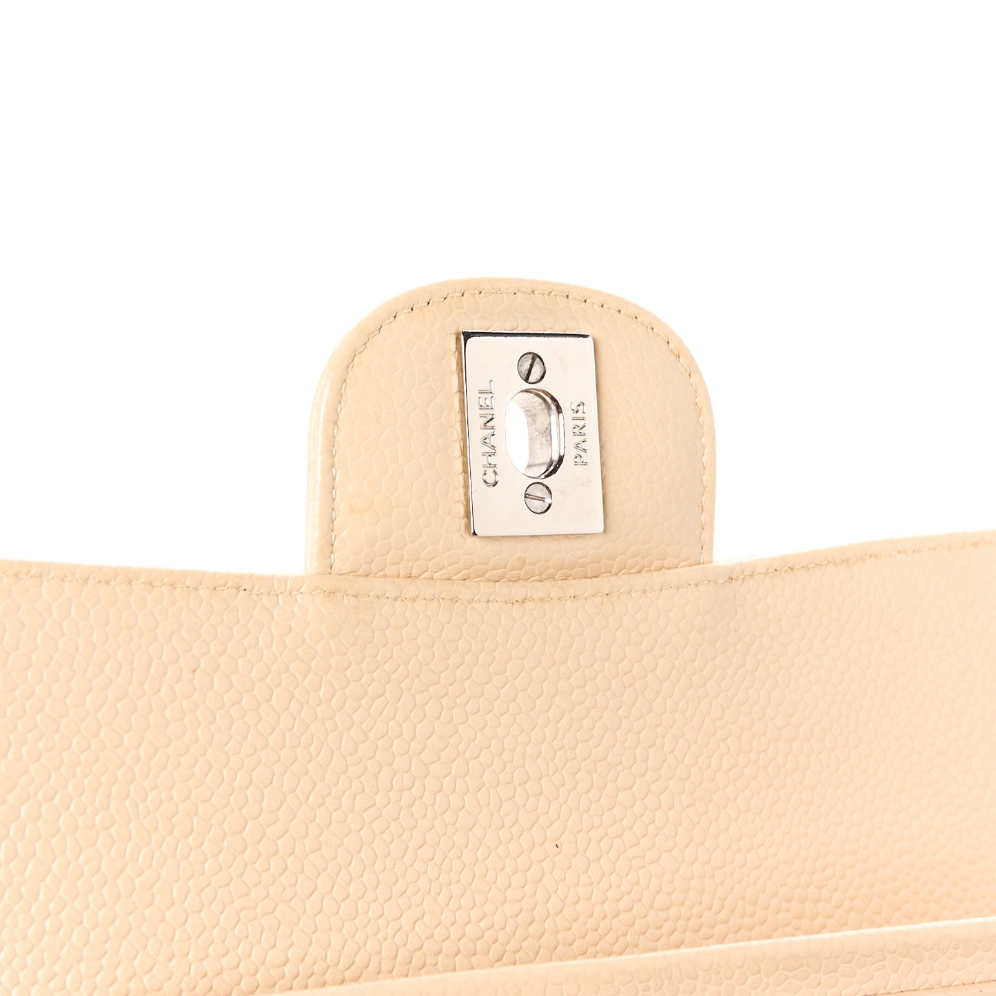 This is an authentic CHANEL Caviar Quilted Medium Double Flap in Beige. This stylish shoulder bag is crafted of luxurious caviar leather in beige. The bag features polished gold chain link leather threaded shoulder straps and Chanel CC interlocking turn lock for the front flap. This opens to an inner flap and a matching leather interior with patch pockets.Follow this item for alerts. Chanel is a registered trademark of Chanel. FASHIONPHILE is not affiliated with Chanel.