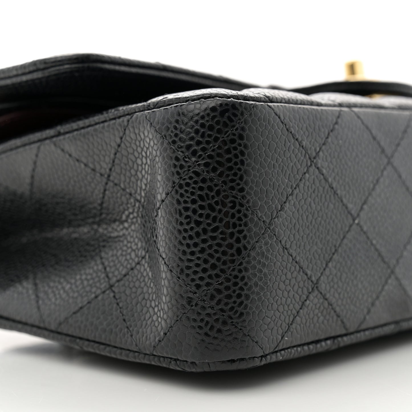 This is an authentic CHANEL Caviar Quilted Medium Double Flap in Black. This elegant shoulder bag is crafted of luxurious caviar textured leather in black. The bag features a leather-threaded gold chain-link shoulder strap, a rear patch pocket, and a crossover flap with a gold classic CC turn lock. The flap opens to reveal an inner flap and a burgundy leather interior with pockets.