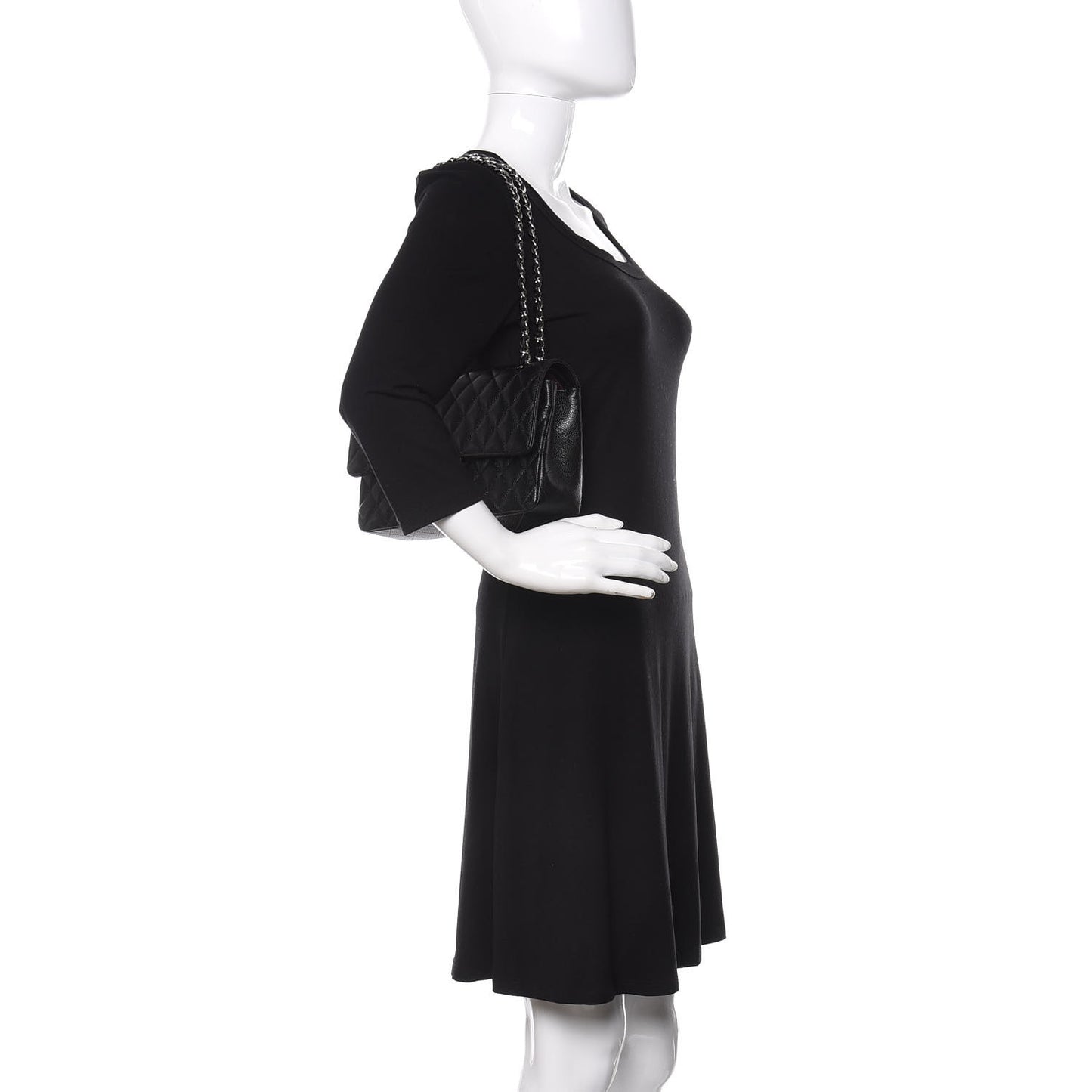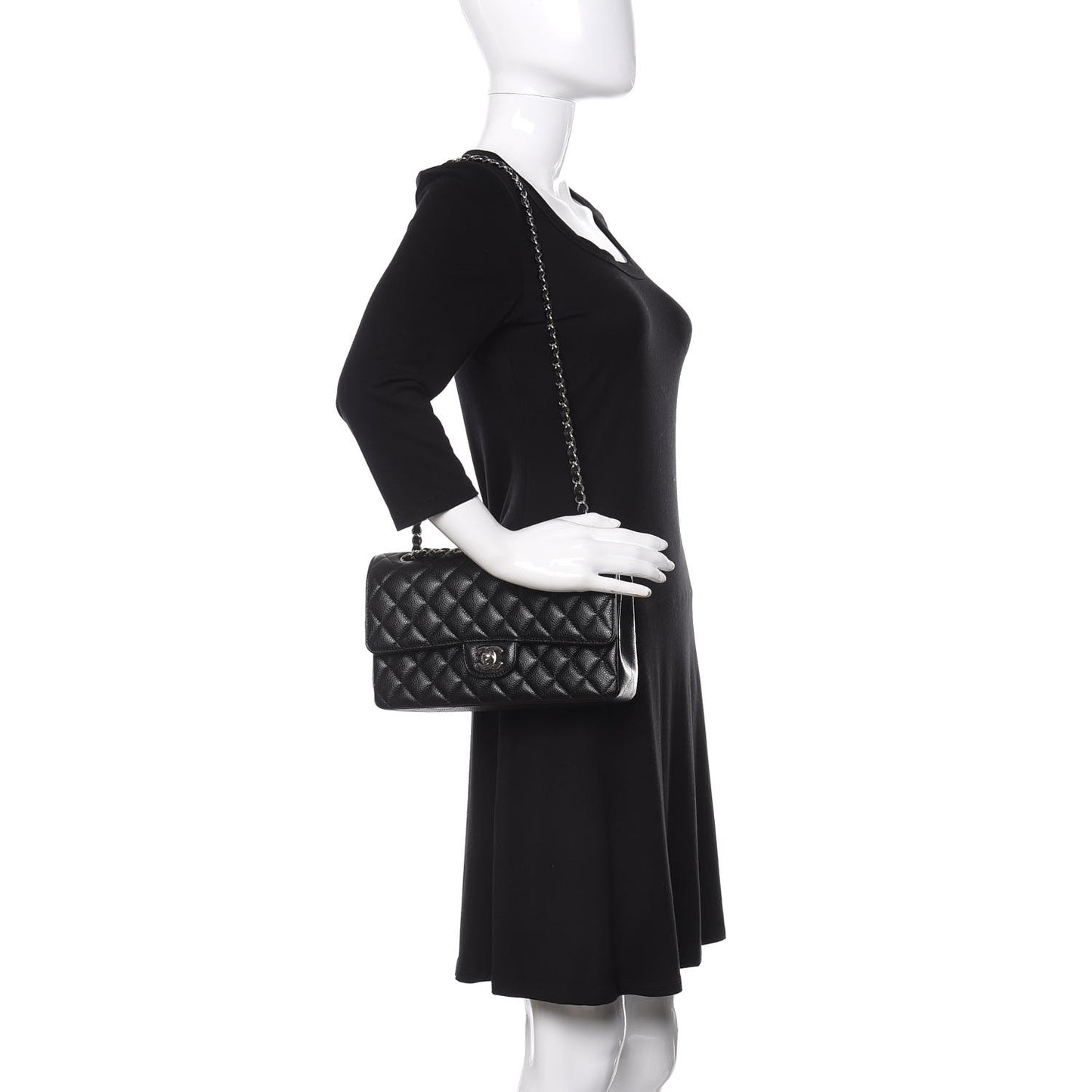 This is an authentic CHANEL Caviar Quilted Medium Double Flap in Black. This shoulder bag is crafted of luxurious black calfskin leather with iconic diamond quilting. The bag has a polished silver chain shoulder strap threaded with black leather and a silver Chanel CC turn-lock. This opens the front flap to reveal an inner flap and a burgundy leather interior with patch pockets.Follow this item for alerts. Chanel is a registered trademark of Chanel. FASHIONPHILE is not affiliated with Chanel.