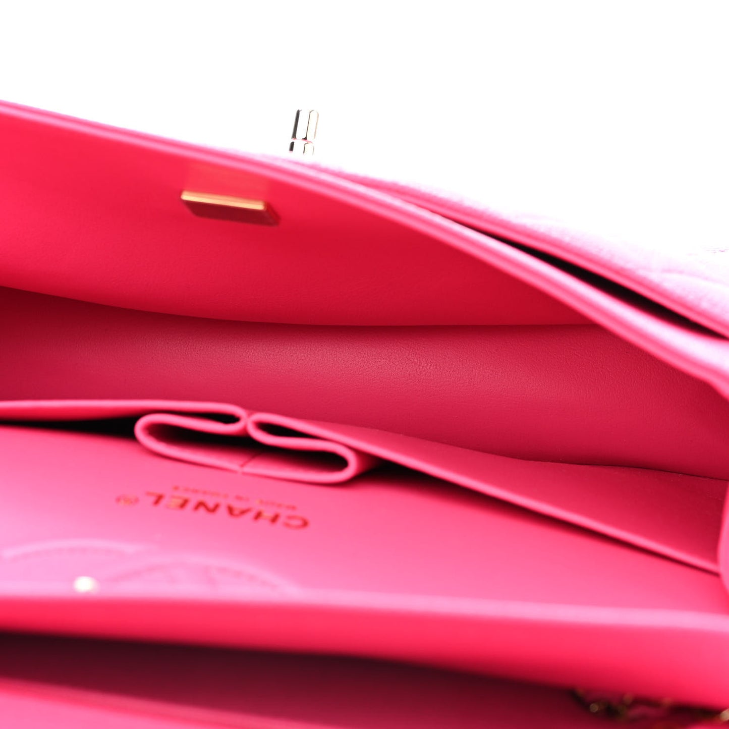 This is an authentic CHANEL Caviar Quilted Medium Double Flap in Dark Pink. This shoulder bag is crafted of diamond quilted caviar leather in pink. This bag features a polished light gold chain-link shoulder strap threaded with leather and a frontal flap with a matching gold Chanel CC turn lock. The flap opens to reveal an inner flap and matte pink leather interior with patch pockets.Follow this item for alerts. Chanel is a registered trademark of Chanel. FASHIONPHILE is not affiliated with Chanel.