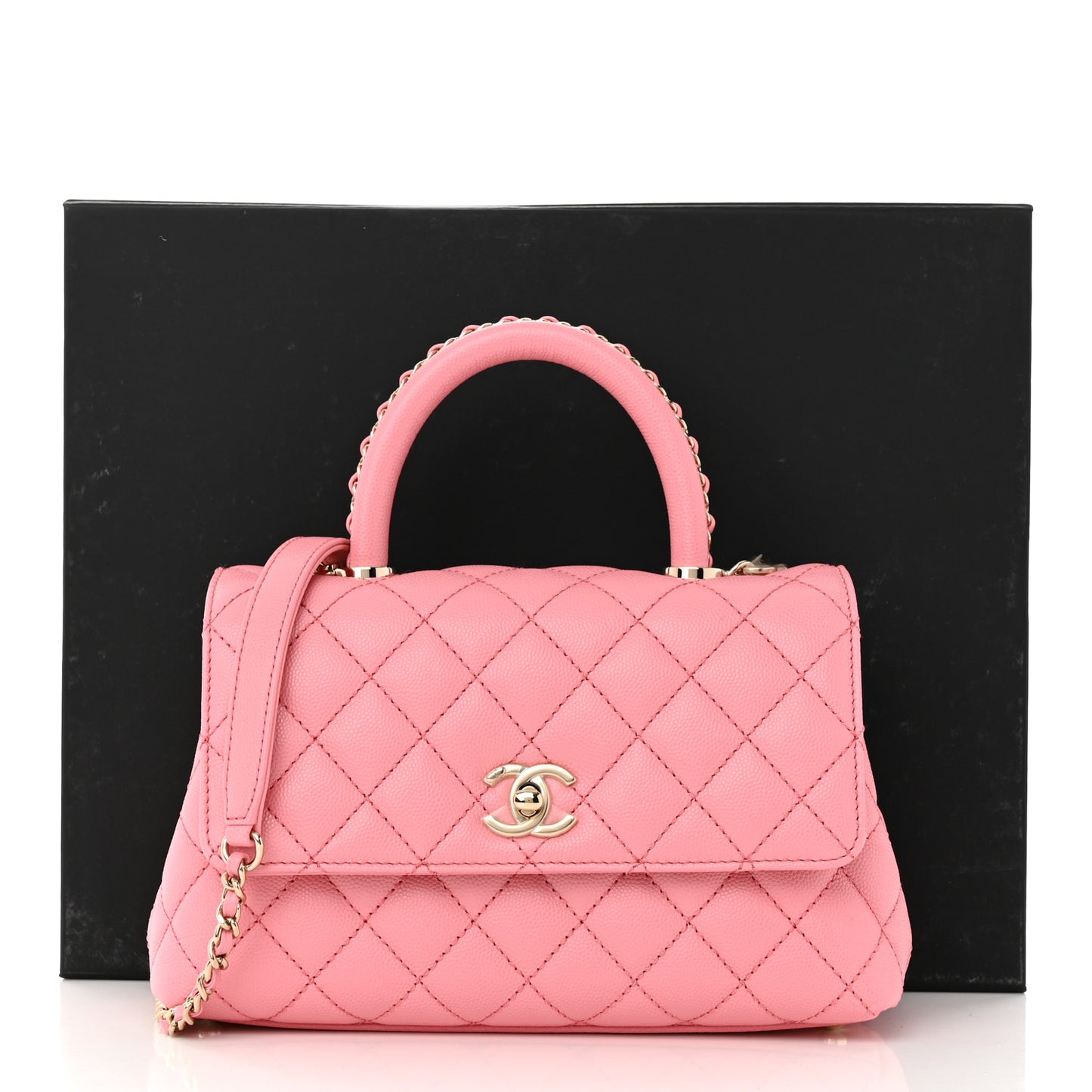 Caviar Quilted Mini Coco Chain Handle Flap Pink