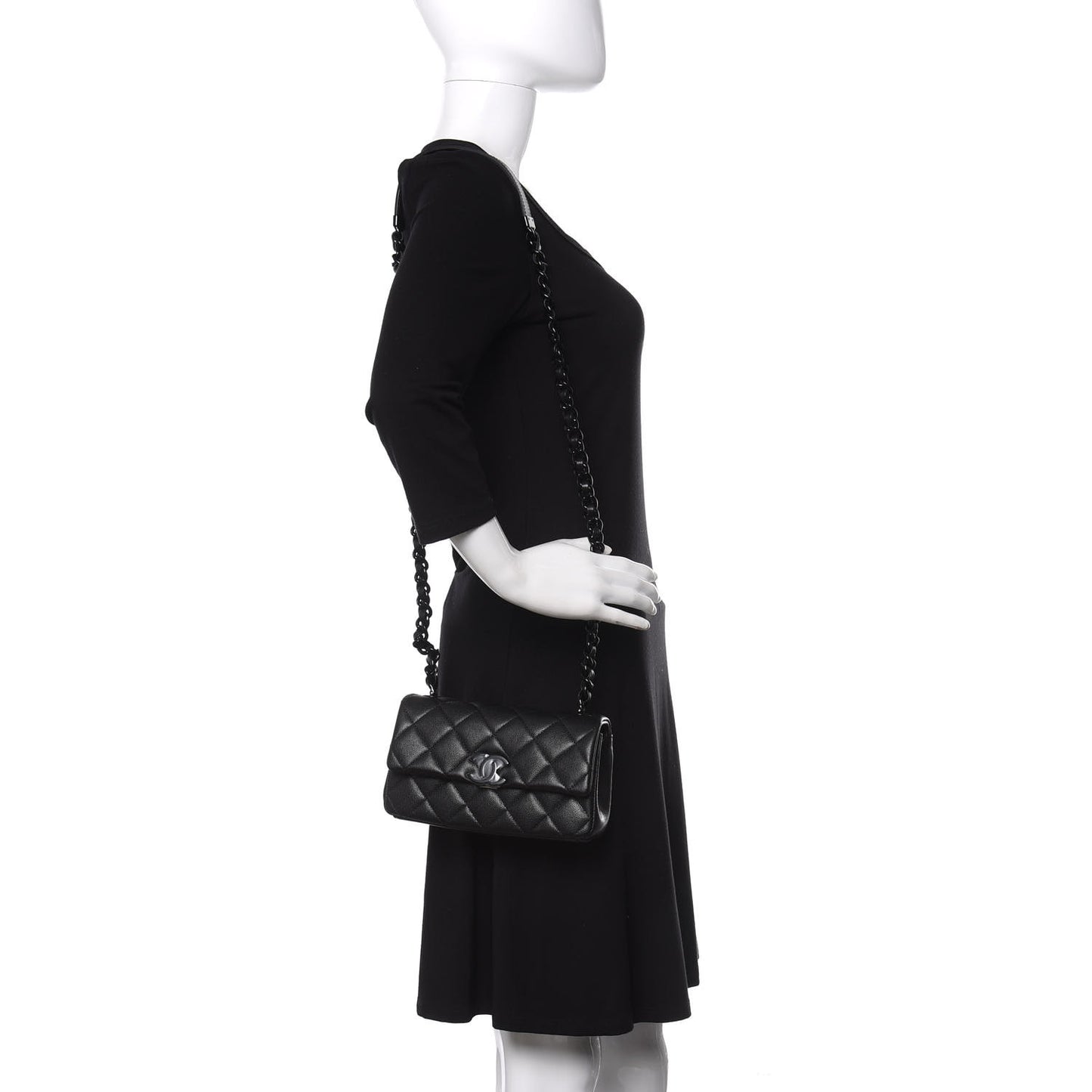 This is an authentic CHANEL Caviar Quilted My Everything Small Flap in Black. This chic shoulder bag is crafted of quilted leather in black. It features a leather and leather threaded black chain link shoulder strap, an exterior rear pocket and a front flap with a black and silver Chanel CC clasp. The flap opens to a hidden front pocket and a black fabric interior with a zipper compartment.Follow this item for alerts. Chanel is a registered trademark of Chanel. FASHIONPHILE is not affiliated with Chanel.