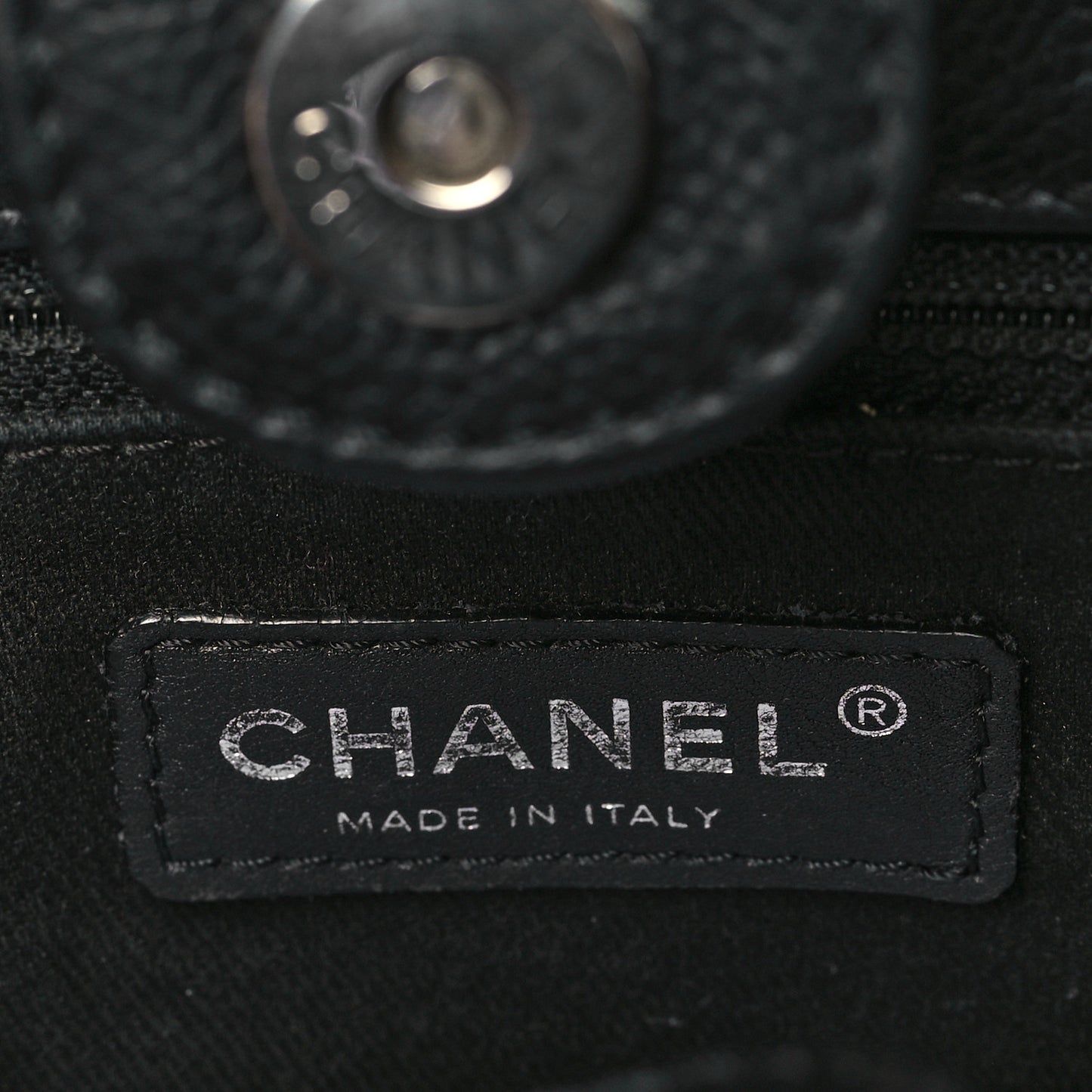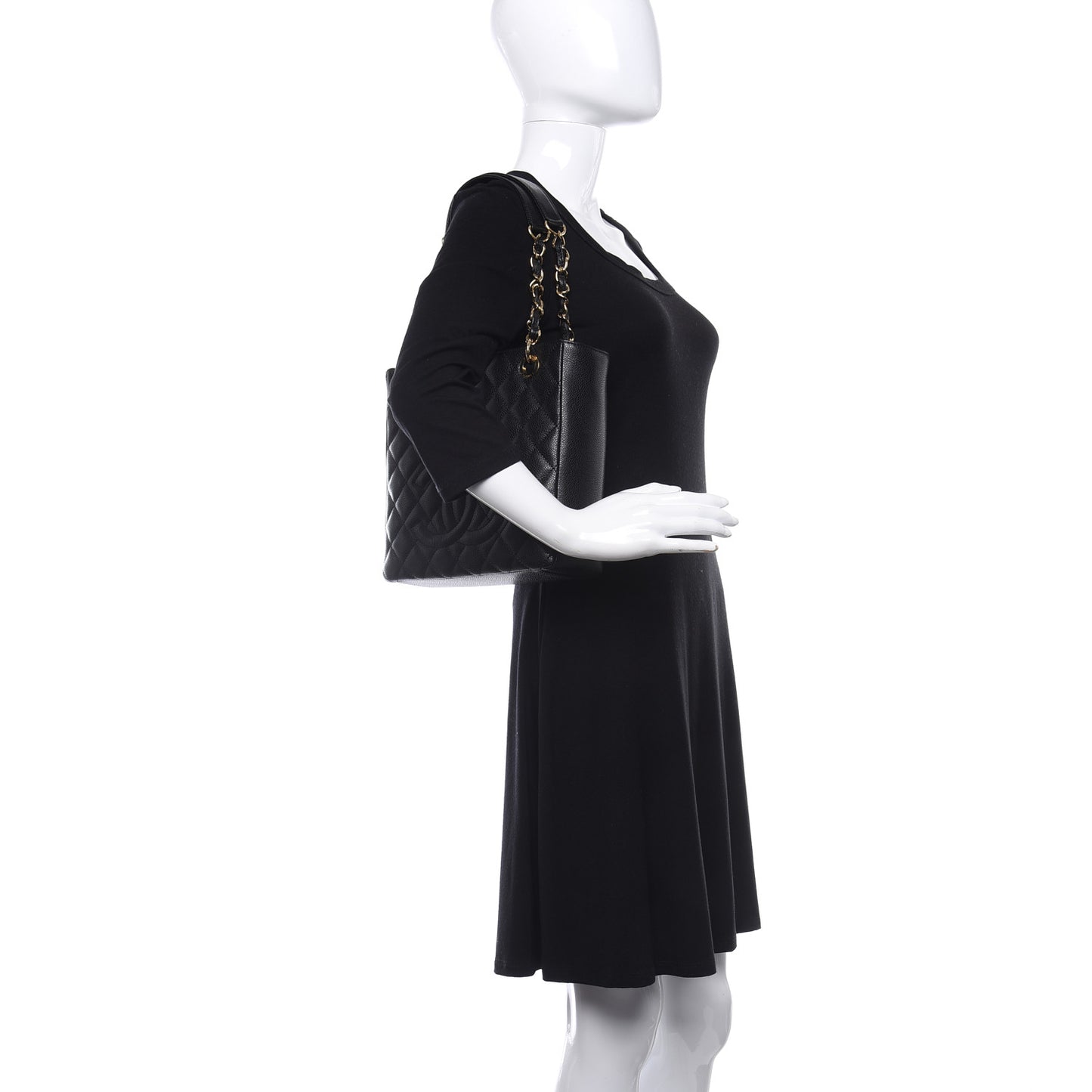This is an authentic CHANEL Caviar Quilted Petit Shopping Tote PST in Black. This stylish tote is crafted of diamond quilted caviar leather in black. This shoulder bag features a rear patch pocket, large Chanel CC on the face, and polished silver chain link shoulder straps threaded with leather and a shoulder pad. The top opens to a spacious black fabric interior with zipper and patch pockets.Follow this item for alerts. Chanel is a registered trademark of Chanel. FASHIONPHILE is not affiliated with Chanel.