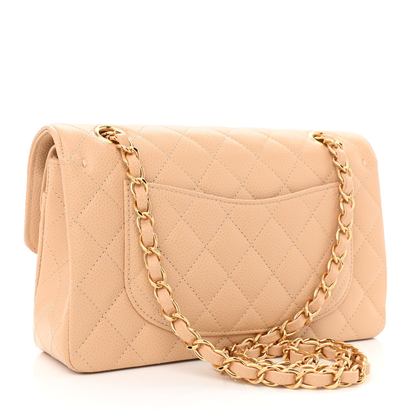 This is an authentic CHANEL Caviar Quilted Small Double Flap in Beige. This stylish shoulder bag is crafted of luxurious caviar leather in light beige. The bag features a polished gold chain-link leather threaded shoulder strap and a Chanel CC turn-lock for the front flap. This opens to reveal an inner flap and a matching leather interior with patch pockets.Follow this item for alerts. Chanel is a registered trademark of Chanel. FASHIONPHILE is not affiliated with Chanel.