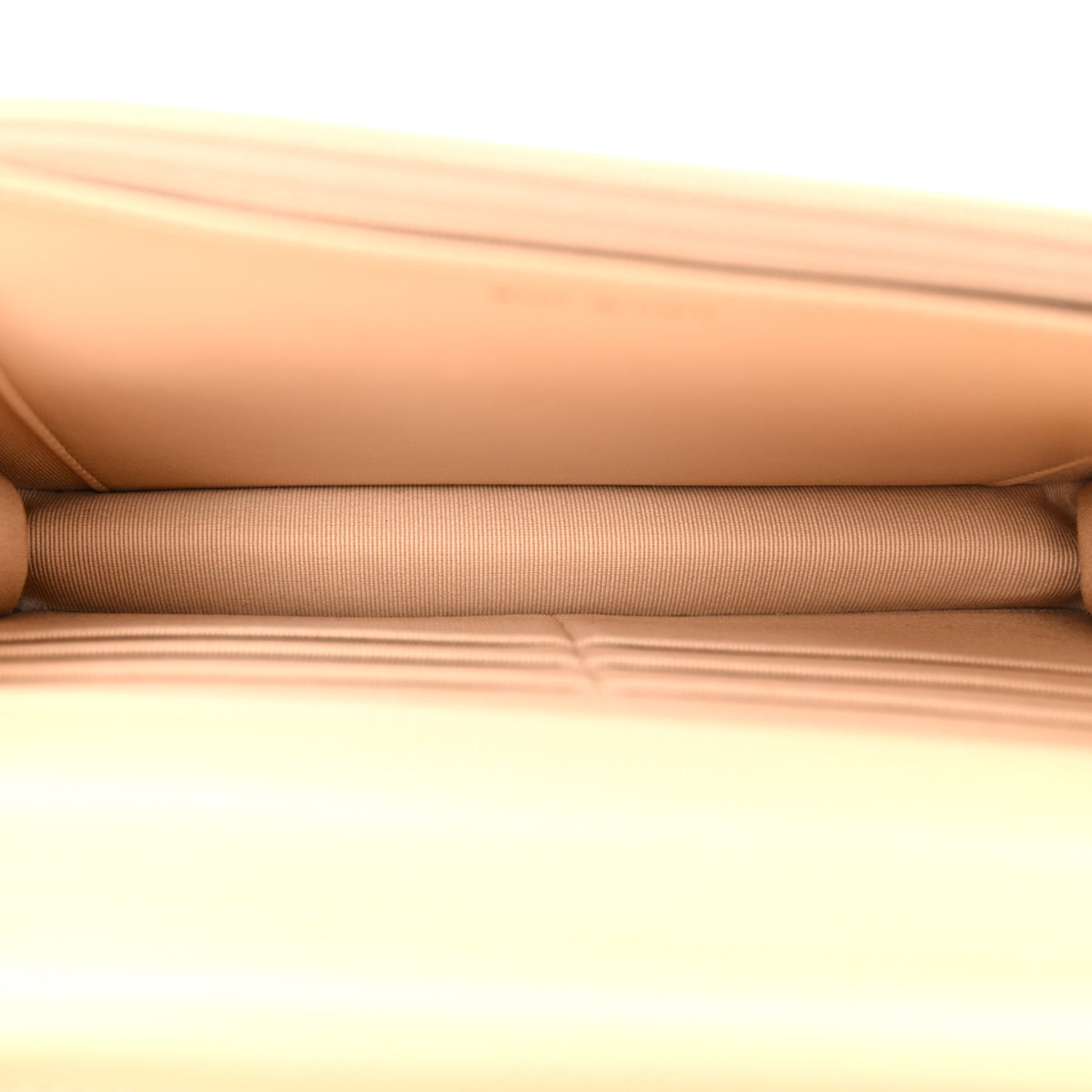 This is an authentic CHANEL Caviar Quilted Wallet on Chain WOC in Beige. This chain wallet is crafted of diamond-quilted caviar leather in beige. It features a rear patch pocket, a leather-threaded gold chain link shoulder strap, and a matching CC logo on the flap. The bag opens with a snap to a beige fabric interior with card slots, a zipper compartment, and a leather patch pocket.Follow this item for alerts. Chanel is a registered trademark of Chanel. FASHIONPHILE is not affiliated with Chanel.