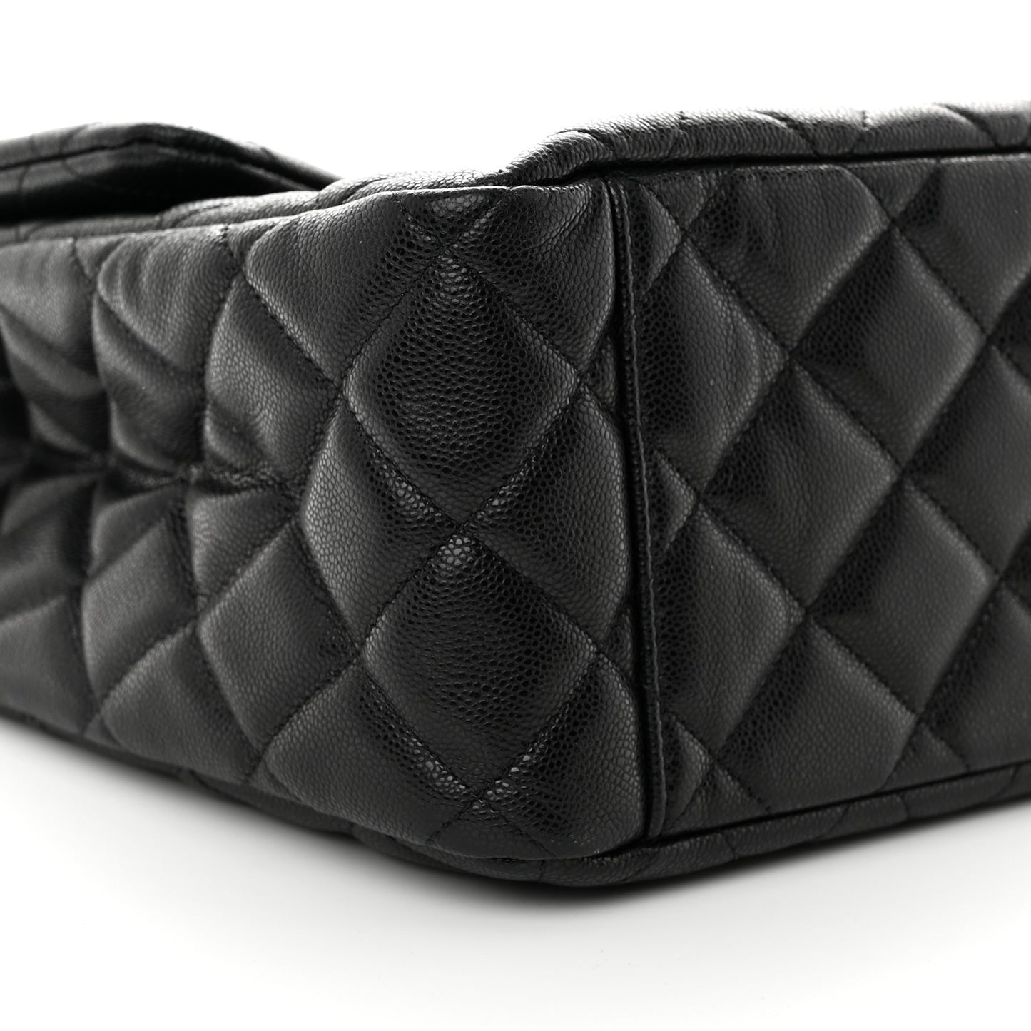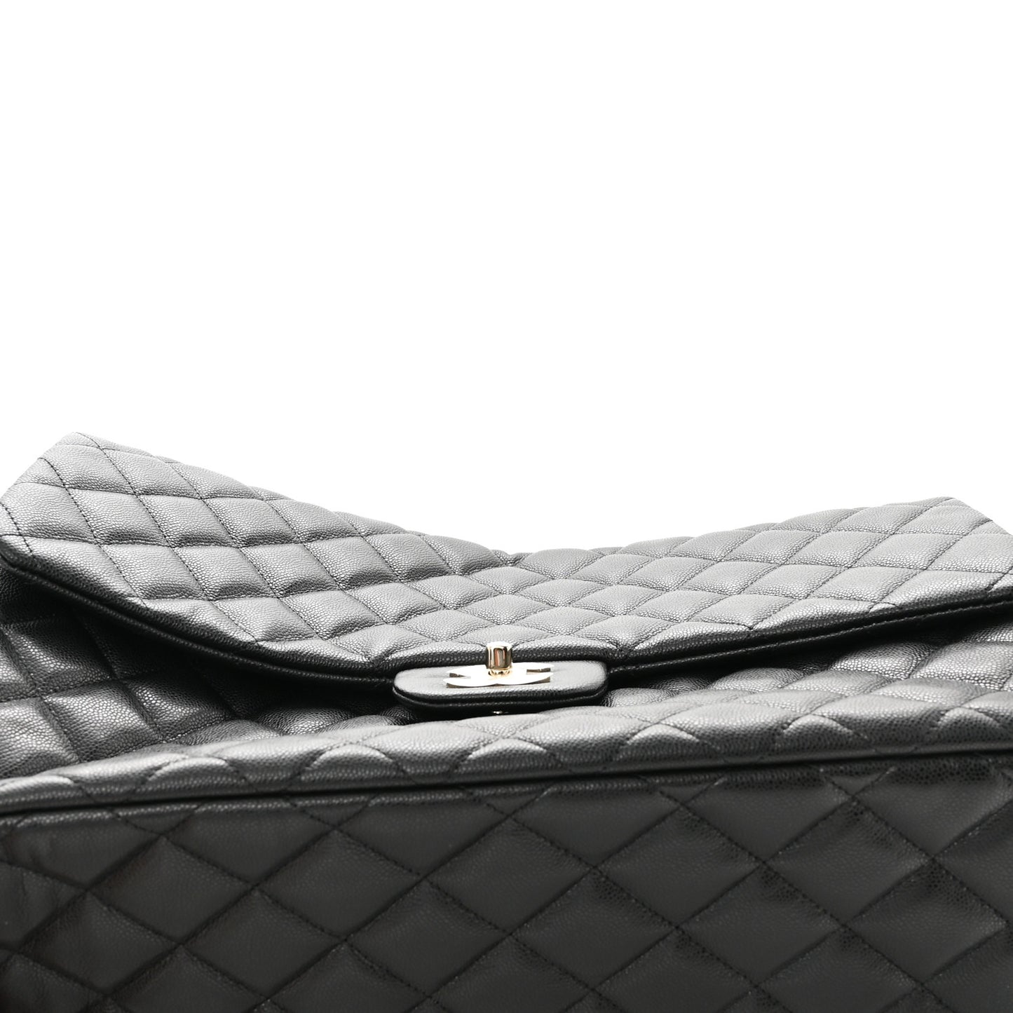 This is an authentic CHANEL Caviar Quilted XXL Travel Flap Bag in Black. This travel bag is crafted of black calfskin quilted leather in black. The tote features a gold chain-link shoulder strap threaded with black leather, a rear pocket, and gold hardware. The CC turn lock opens to a spacious black fabric interior with zipper and patch pockets.Follow this item for alerts. Chanel is a registered trademark of Chanel. FASHIONPHILE is not affiliated with Chanel.