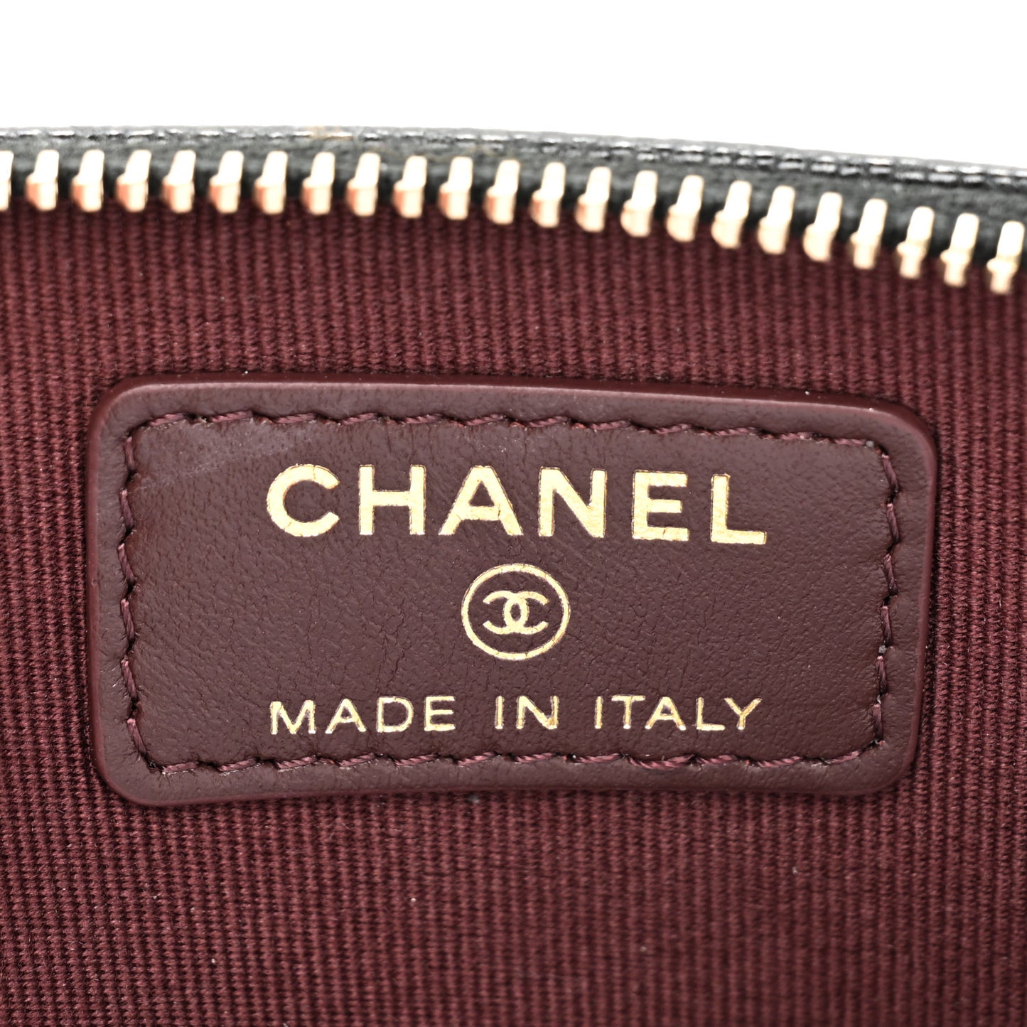This is an authentic CHANEL Caviar Quilted Zip Card Holder Wallet in Black. This wallet is crafted of caviar leather in black. It features a light gold Chanel CC logo on the front patch pocket and card slots at the rear. The top zipper opens to a burgundy fabric interior.Follow this item for alerts. Chanel is a registered trademark of Chanel. FASHIONPHILE is not affiliated with Chanel.