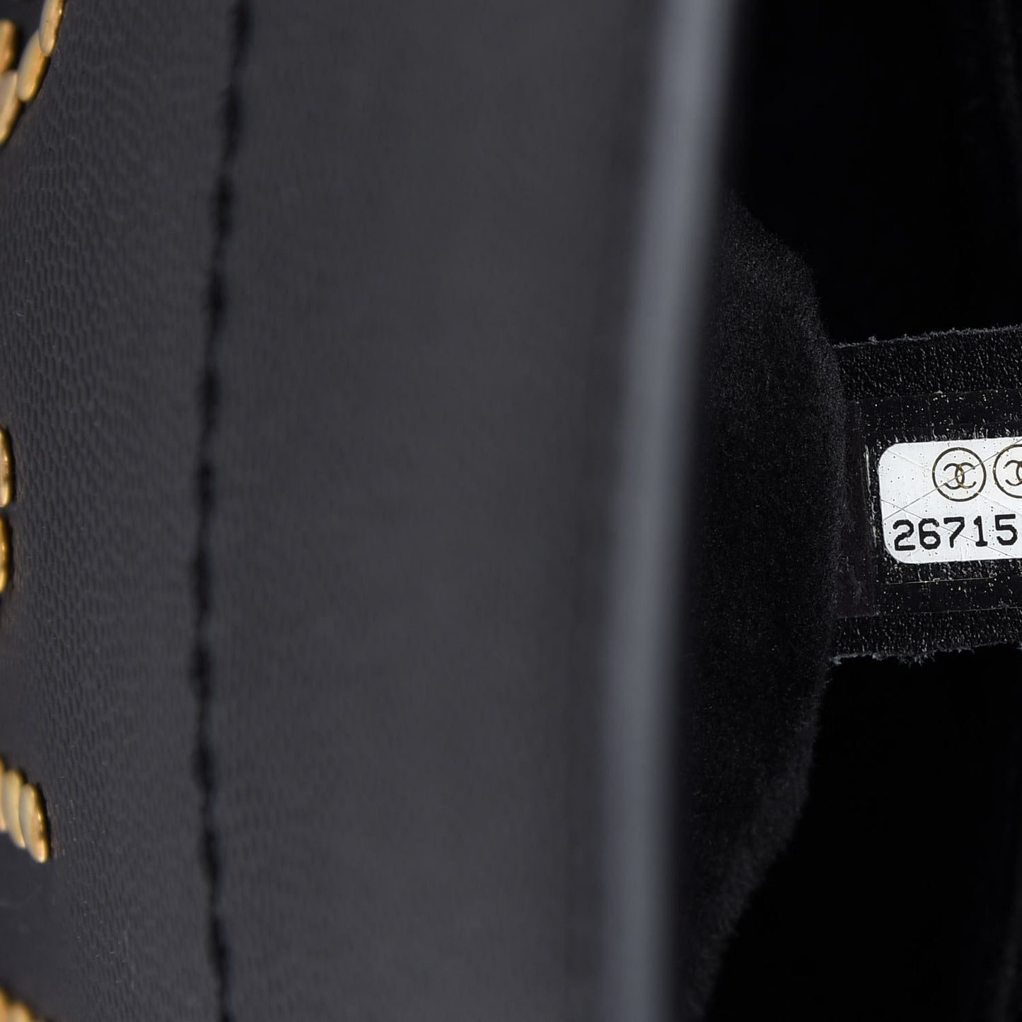 This is an authentic CHANEL Caviar Small Studded Deauville Tote in Black. This stylish handbag is crafted of grained caviar leather in black, with an aged gold-studded Chanel advertisement logo on the front. The bag features black leather top handles and leather threaded aged gold chain-link shoulder straps. The top is open to a black microfiber interior with hanging zipper pockets.Follow this item for alerts. Chanel is a registered trademark of Chanel. FASHIONPHILE is not affiliated with Chanel.