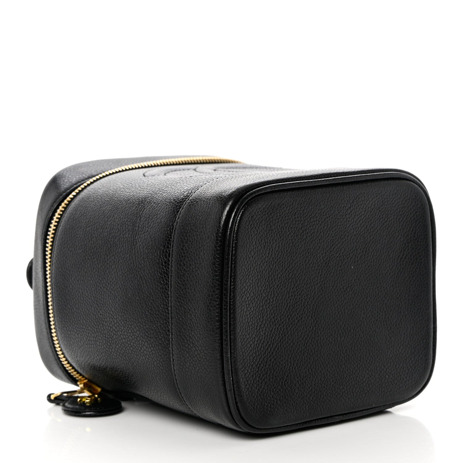 This is an authentic CHANEL Caviar Vanity Cosmetic Case in Black. This cosmetic case is beautifully crafted of caviar leather in black. The bag features a leather top handle, a quilted Chanel CC logo and a matching gold wrap-around zipper that opens to a black interior with a patch pocket.Follow this item for alerts. Chanel is a registered trademark of Chanel. FASHIONPHILE is not affiliated with Chanel.