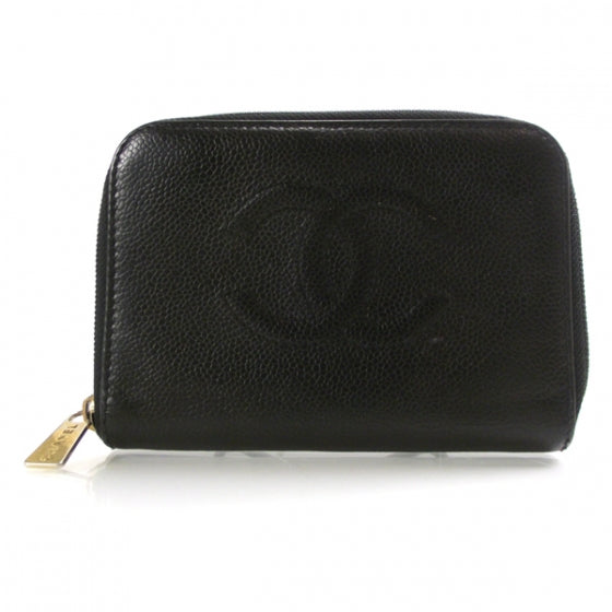 This is an authentic CHANEL Caviar Zip-Around Wallet Black. This is a stunning Chanel classic clutch wallet with a timeless Chanel look for everyday.The wallet is crafted of luxurious black caviar leather with a quilted Chanel CC logo on the front. The wallet has a simple folder shape and opens with a 3/4 zipper to a matte black leather interior with card slots, patch pockets and bill folds. This wallet is also useful for holding papers, receipts, tickets, bills, etc.