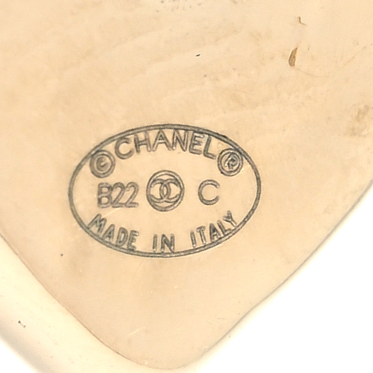 This is an authentic pair of CHANEL CC Heart Earrings in Gold. These elegant earrings feature a heart-shaped stud with a black Chanel CC logo.Follow this item for alerts. Chanel is a registered trademark of Chanel. FASHIONPHILE is not affiliated with Chanel.