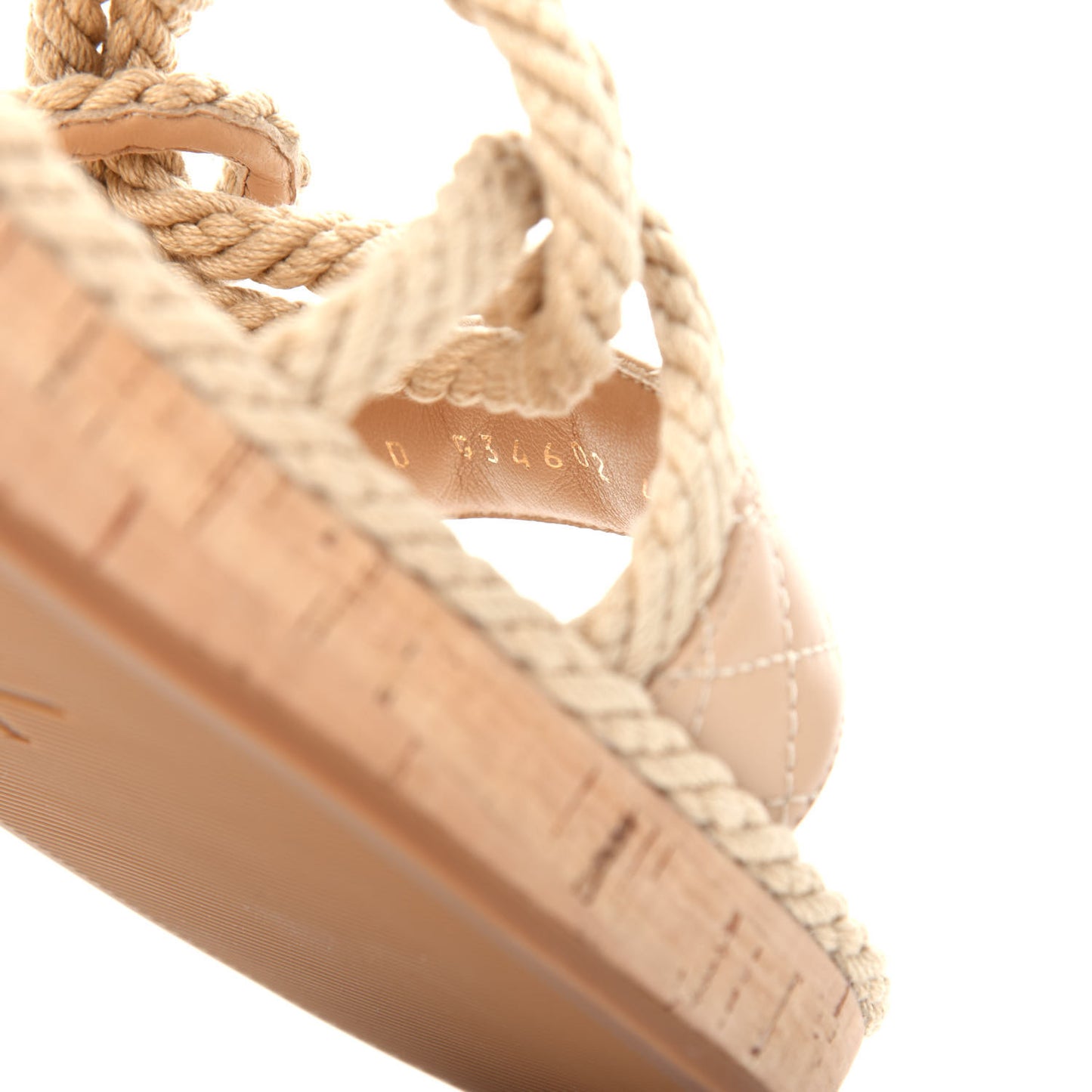 This is an authentic pair of CHANEL Cord Lambskin Quilted Logo Sandals size 41 in Beige. These chic sandals are crafted of smooth beige lambskin leather and feature rubber soles, cork midsoles, rope straps, and a gold-tone Chanel logo across the toe strap.Follow this item for alerts. Chanel is a registered trademark of Chanel. FASHIONPHILE is not affiliated with Chanel.