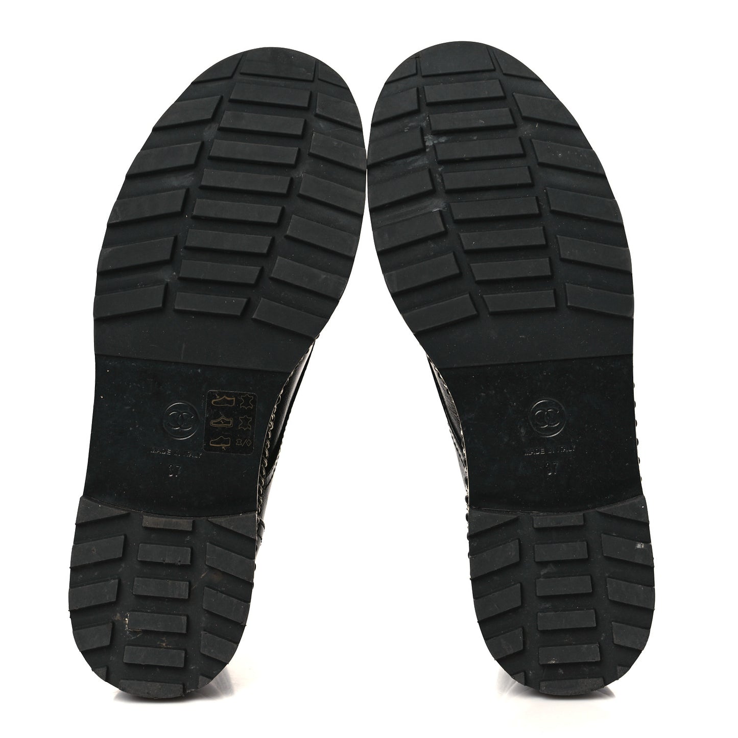 Chanel/ Accessories/ Shoes /Chanel Crackled Calfskin Velvet Pearl Combat Short Boots 37 Black