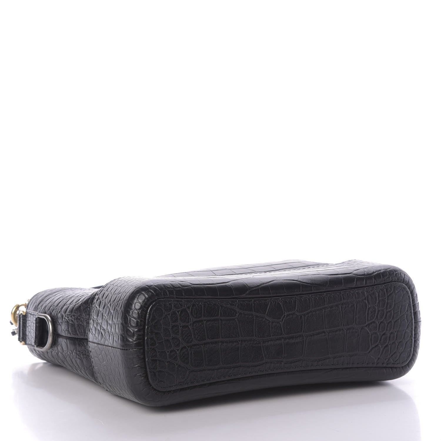 Crocodile Embossed Calfskin Medium Gabrielle Cocodile Hobo Black