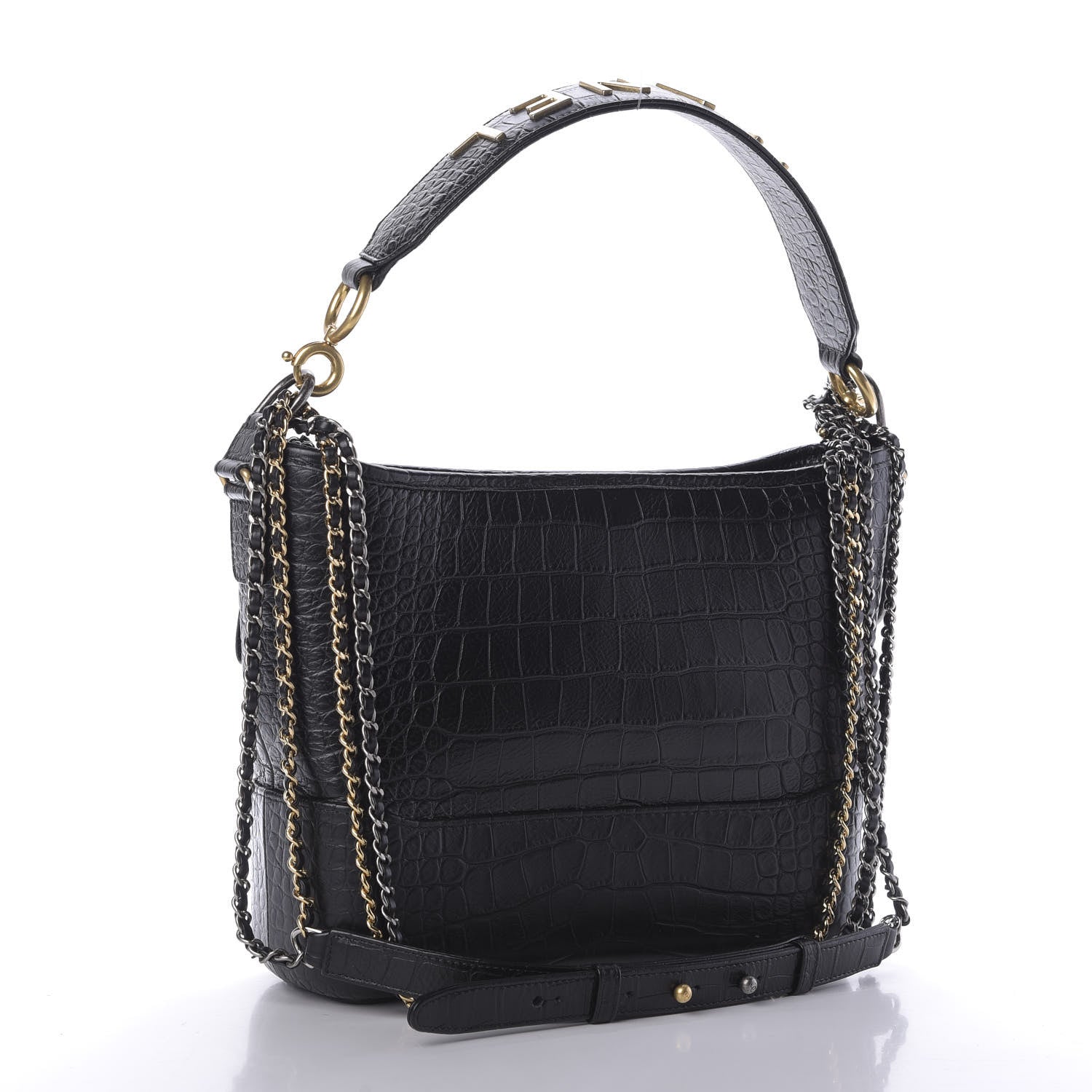 Chanel/ Bags/ Shoulder Bags /Chanel Crocodile Embossed Calfskin Medium Gabrielle Cocodile Hobo Black