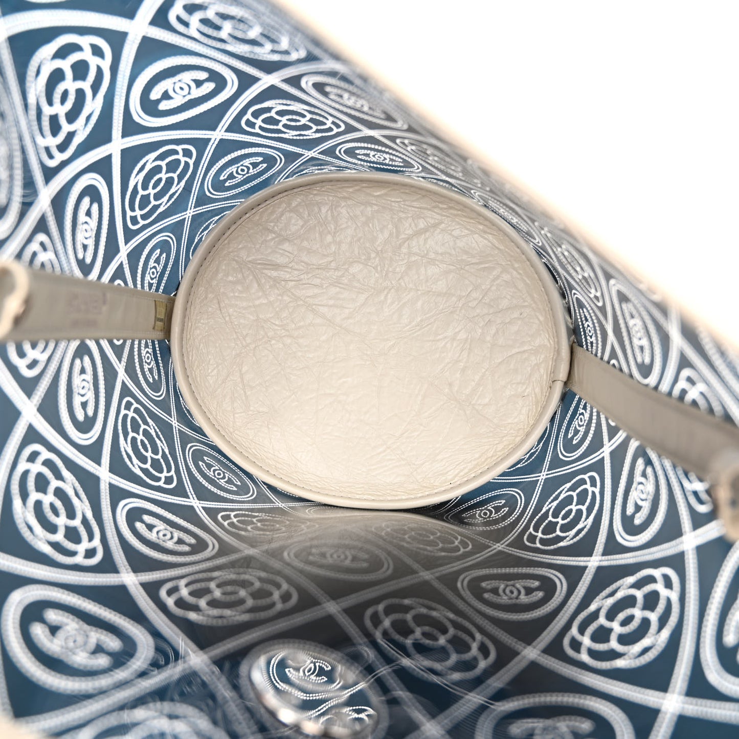 This is an authentic CHANEL Crumpled Calfskin PVC Camellia Coco Bucket Bag in Black and White. This stylish bucket bag is crafted of crumpled calfskin leather in white and clear PVC with a Chanel CC logo and camellia print. It features a leather and silver chain link shoulder strap, an open top and a see through interior with a leather base and a snap-in removable pouch.Follow this item for alerts. Chanel is a registered trademark of Chanel. FASHIONPHILE is not affiliated with Chanel.