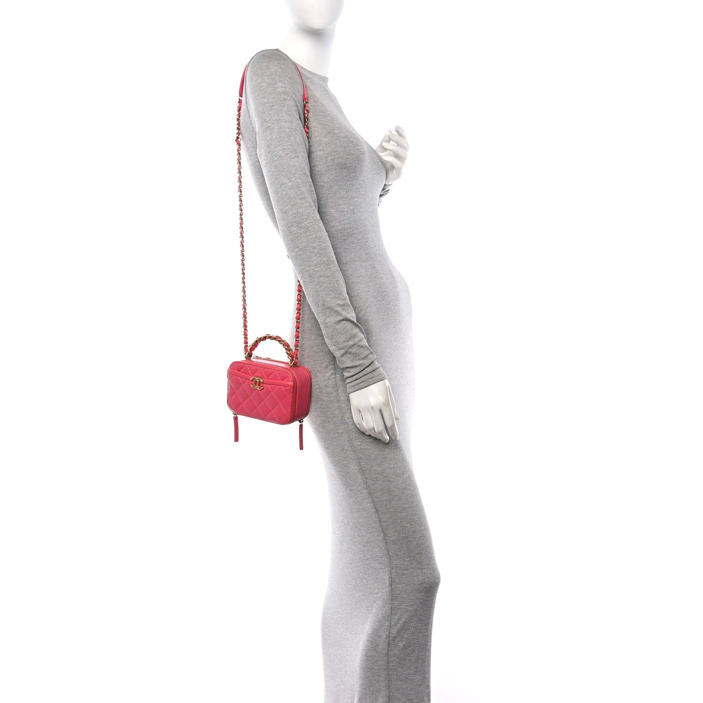 Chanel/ Bags/ Handbags /Chanel Crumpled Calfskin Quilted Mini Get Round Top Handle Vanity Case Pink