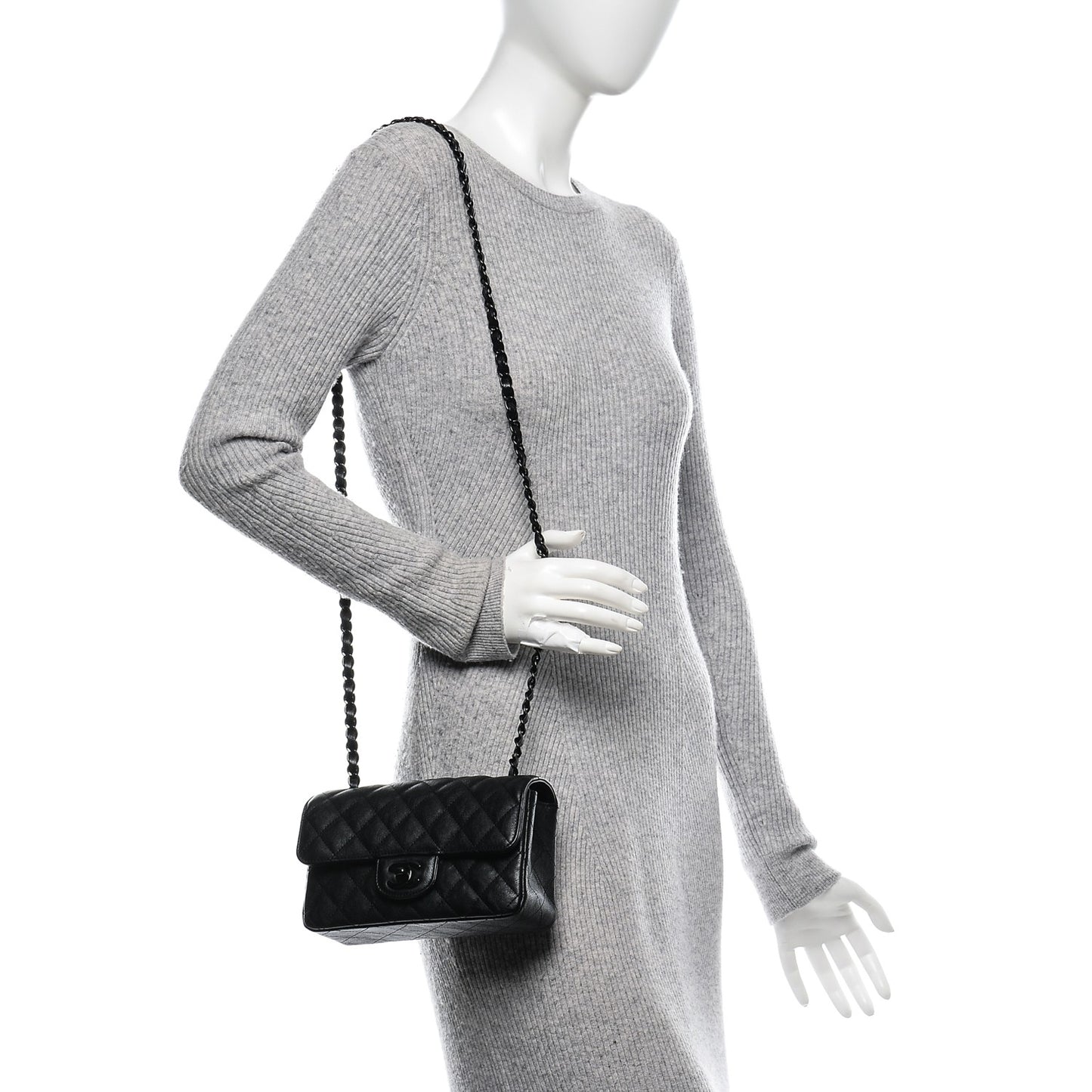 Chanel/ Bags/ Shoulder Bags /Chanel Crumpled Calfskin Quilted Mini Rectangular Flap So Black