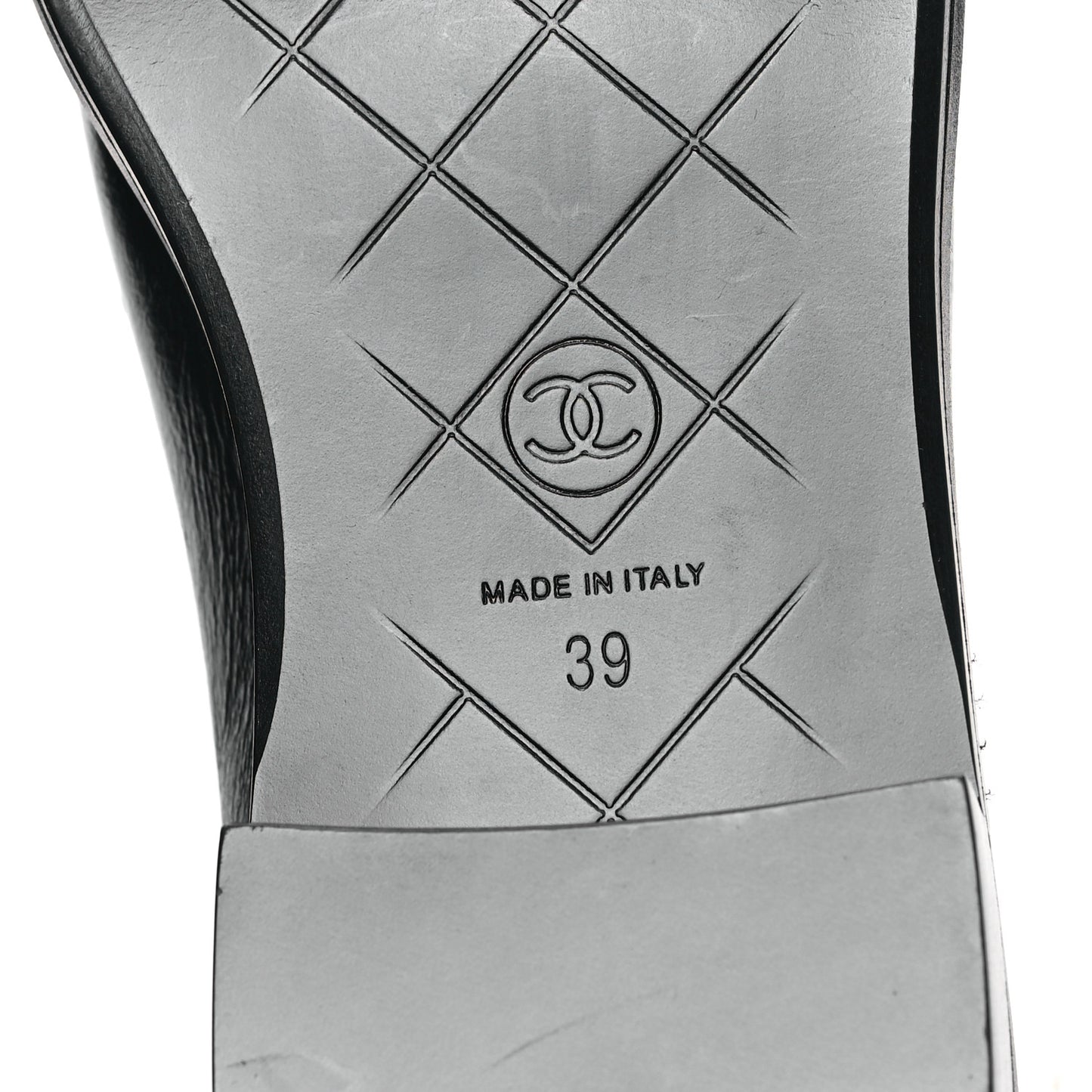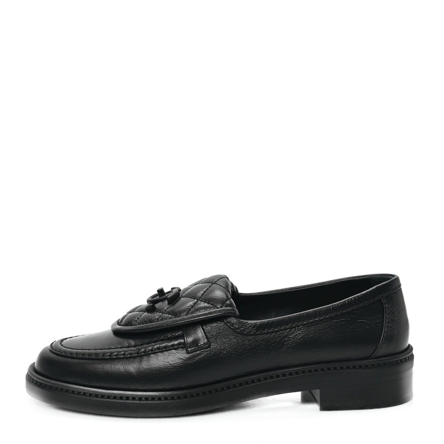 Chanel/ Accessories/ Shoes /Chanel Crumpled Lambskin Quilted CC Turnlock Loafers 39 Black