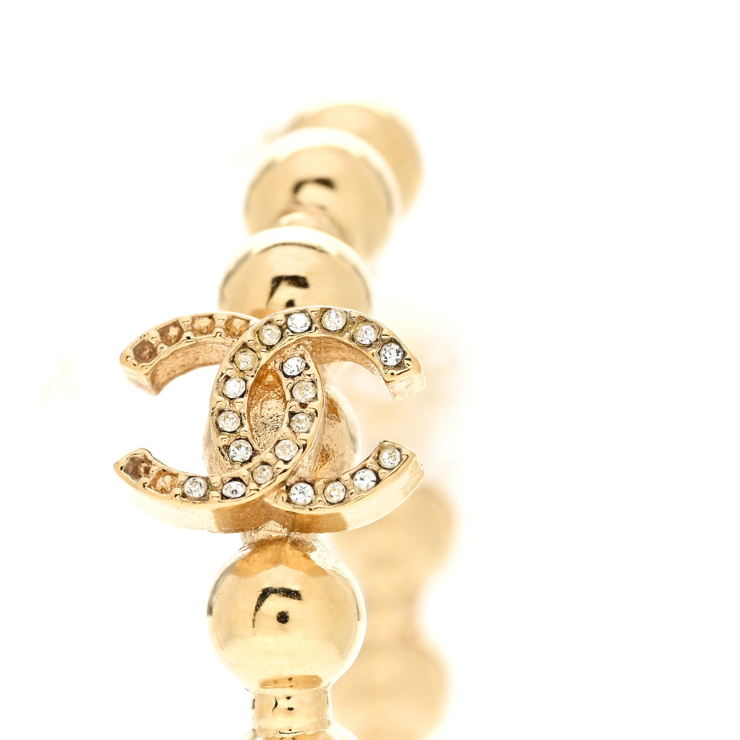 Chanel/ Jewelry/ Earrings /Chanel Crystal Bead CC Hoop Earrings Gold