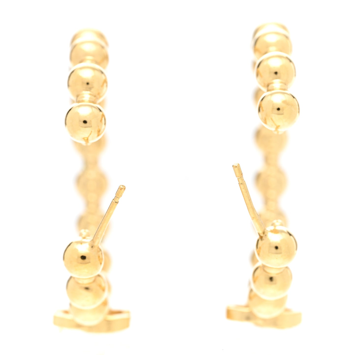 This is an authentic pair of CHANEL Crystal Bead CC Hoop Earrings in Gold. These gold hoop earrings feature gold tone beaded design with a small CC encrusted in crystals.