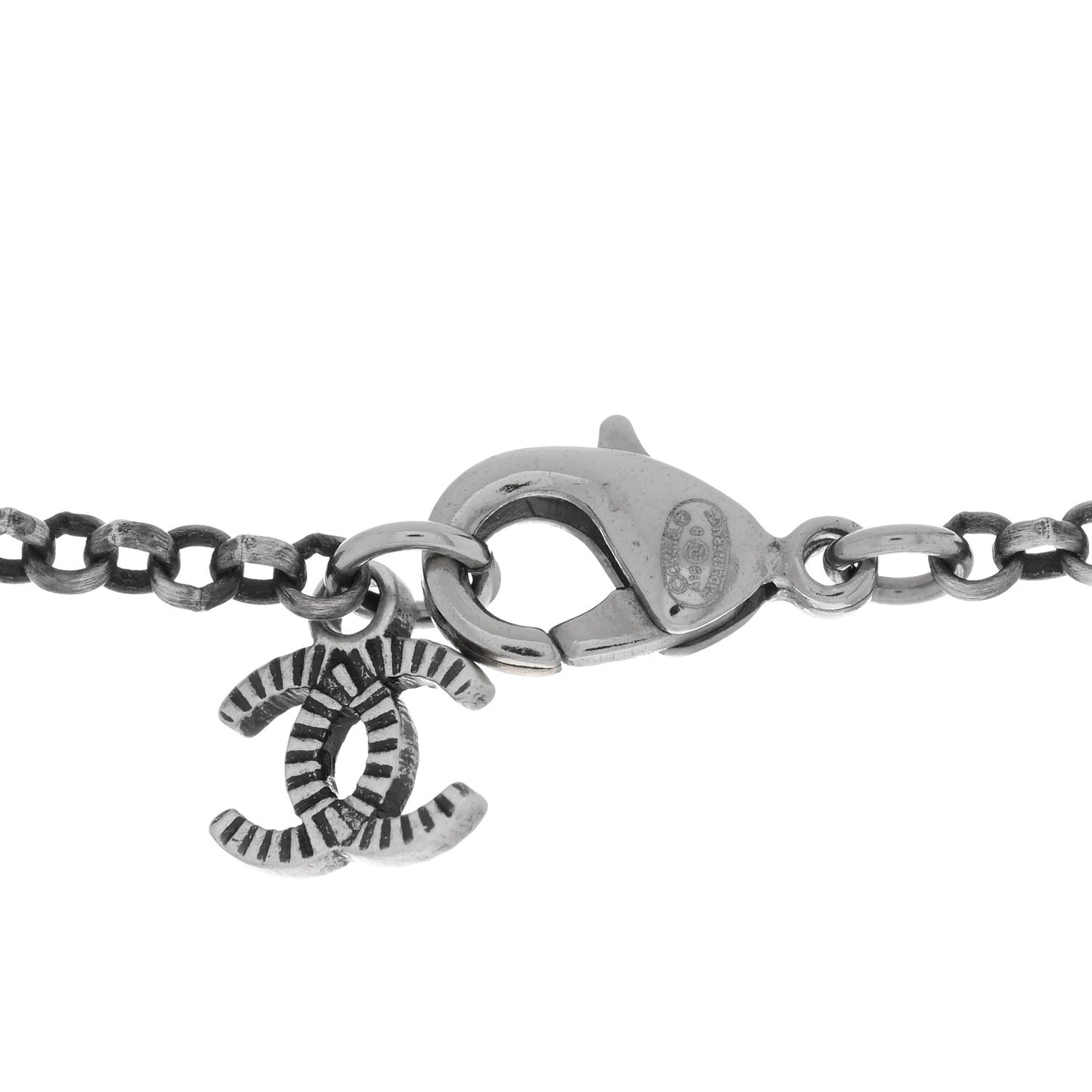 Chanel/ Jewelry/ Necklaces /Chanel Crystal CC Pendant Necklace Silver