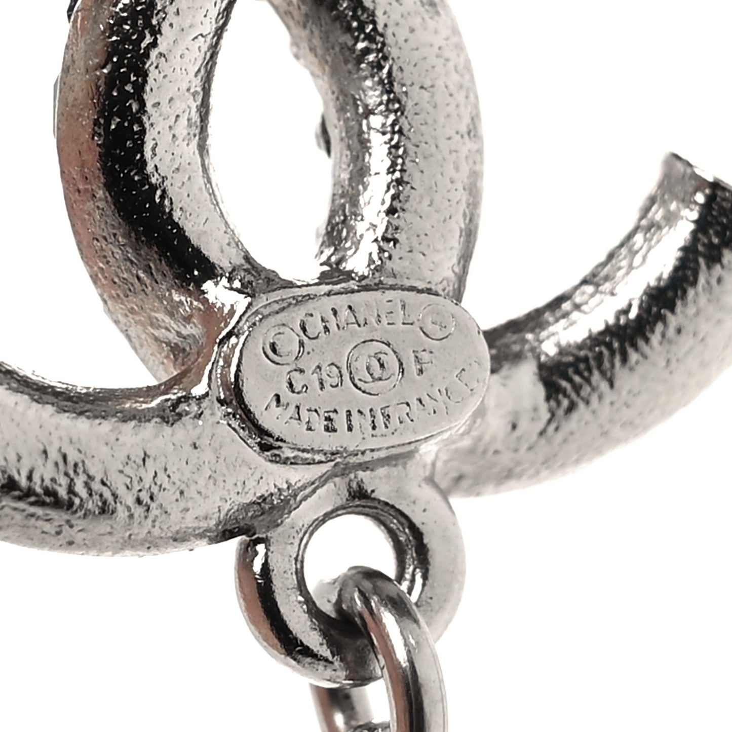 This is an authentic pair of CHANEL Crystal Drop Long CC Earrings in Silver. These classic earrings feature a blue and clear crystal Chanel CC logo stud accented by a silver chain and a matching crystal orb.Follow this item for alerts. Chanel is a registered trademark of Chanel. FASHIONPHILE is not affiliated with Chanel.