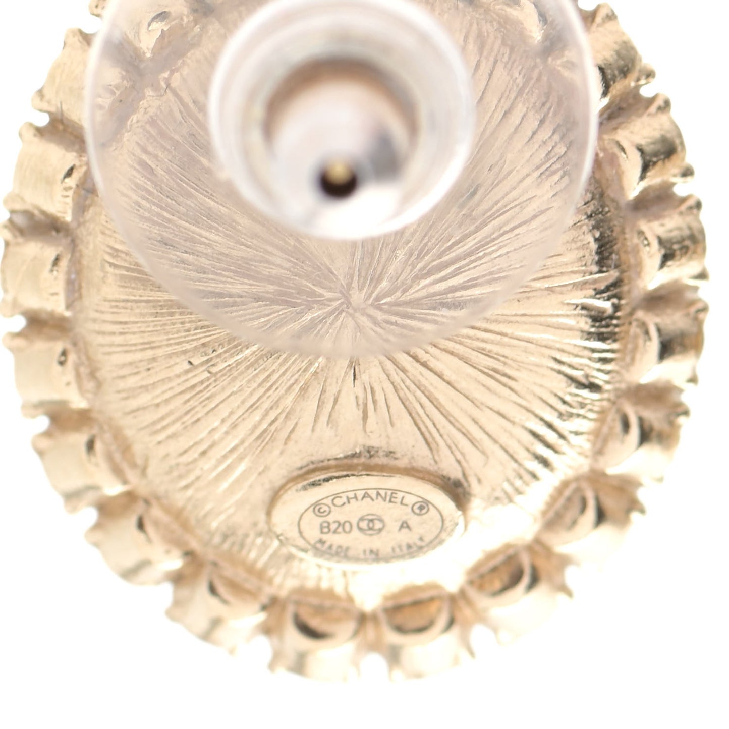 These are authentic CHANEL Crystal Enamel CC Round Earrings in Light Gold and White. These lovely gold tone earrings feature resin pearls with the iconic CC logo and mini crystals.Follow this item for alerts. Chanel is a registered trademark of Chanel. FASHIONPHILE is not affiliated with Chanel.